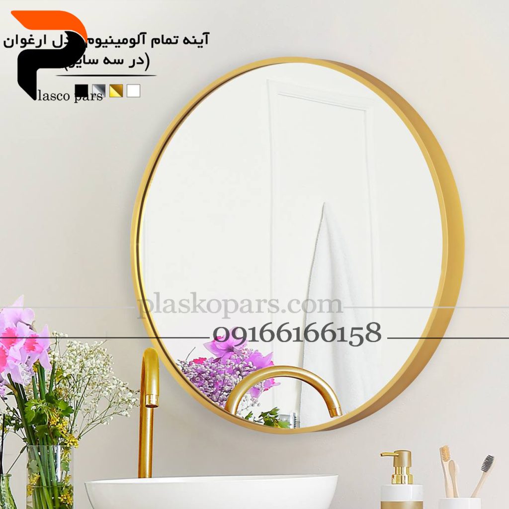 آینه گرد آلومینیوم طلایی متوسط ارغوان اطلس