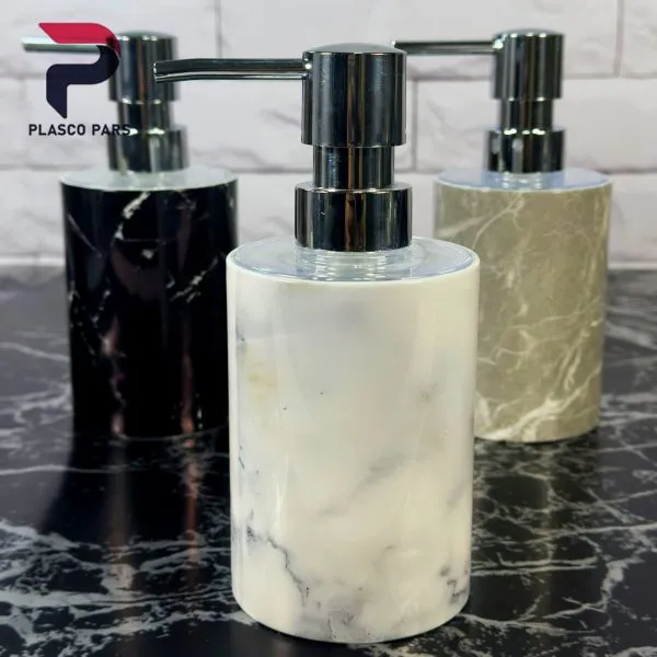 جا مایع از پلاستیک فشرده و با پمپ دستی پهن تهیه شده است که پمپ کردن صابون را راحتتر میکند. این جنس، بهداشتی بوده و به راحتی قابل تمیز کردن است.