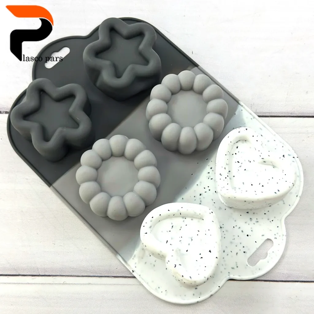 - قالبهای سیلیکونی: انعطافپذیر، مقاوم در برابر حرارت و بسیار مناسب برای کیکهای تکنفره. خارج کردن شیرینی از آنها بسیار آسان است. اما برای ژلهها توصیه نمیشوند و باید از کیفیت آنها مطمئن باشید تا بوی نامطبوعی نگیرند.