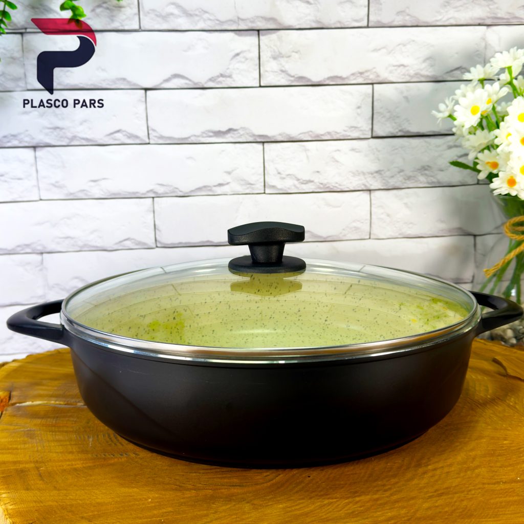 قابلمه 28 ونیز دسته چوبی درب پیرکس مشکی هاناتک