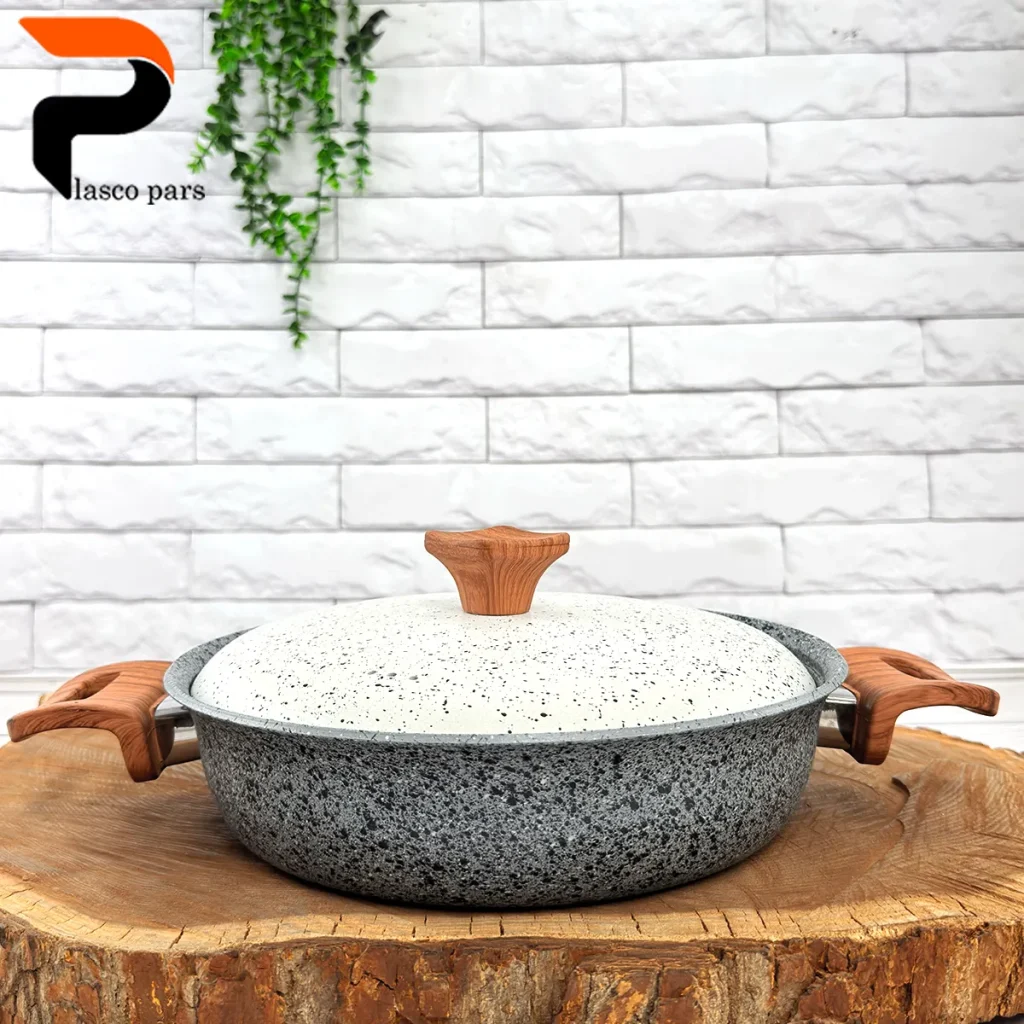 تابه 24 دودسته دسته چوبی گرانیتی مشکی سفید هاناتک