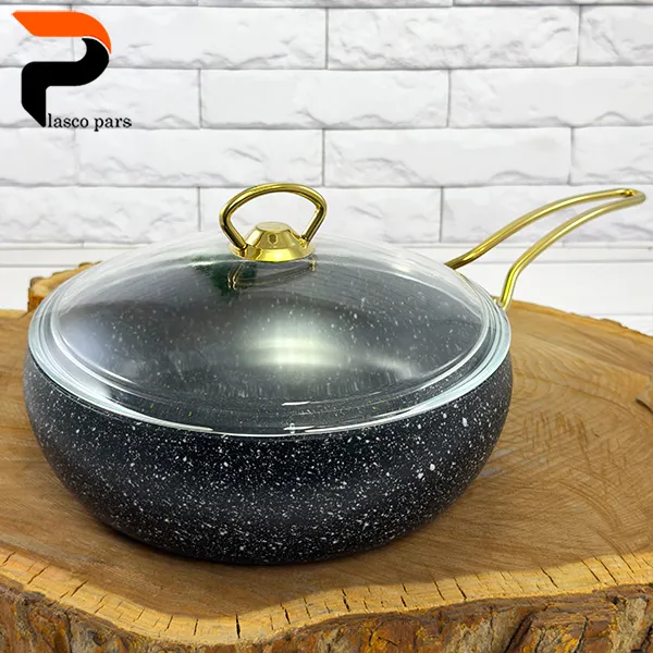 تابه 24 تکدسته آنتیک دسته چوبی گرانیتی مشکی هاناتک