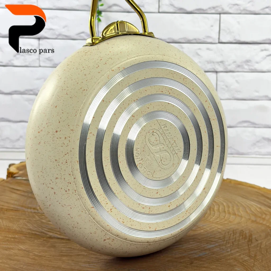 تابه 24 دودسته دسته چوبی گرانیتی کرمی هاناتک