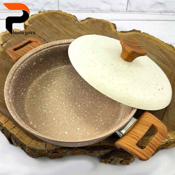 تابه 24 دودسته دسته چوبی گرانیتی نسکافه ای کرم هاناتک