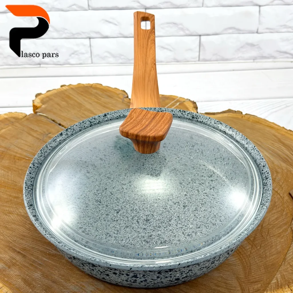 تابه 24 دودسته دسته چوبی گرانیتی طوسی سفید هاناتک