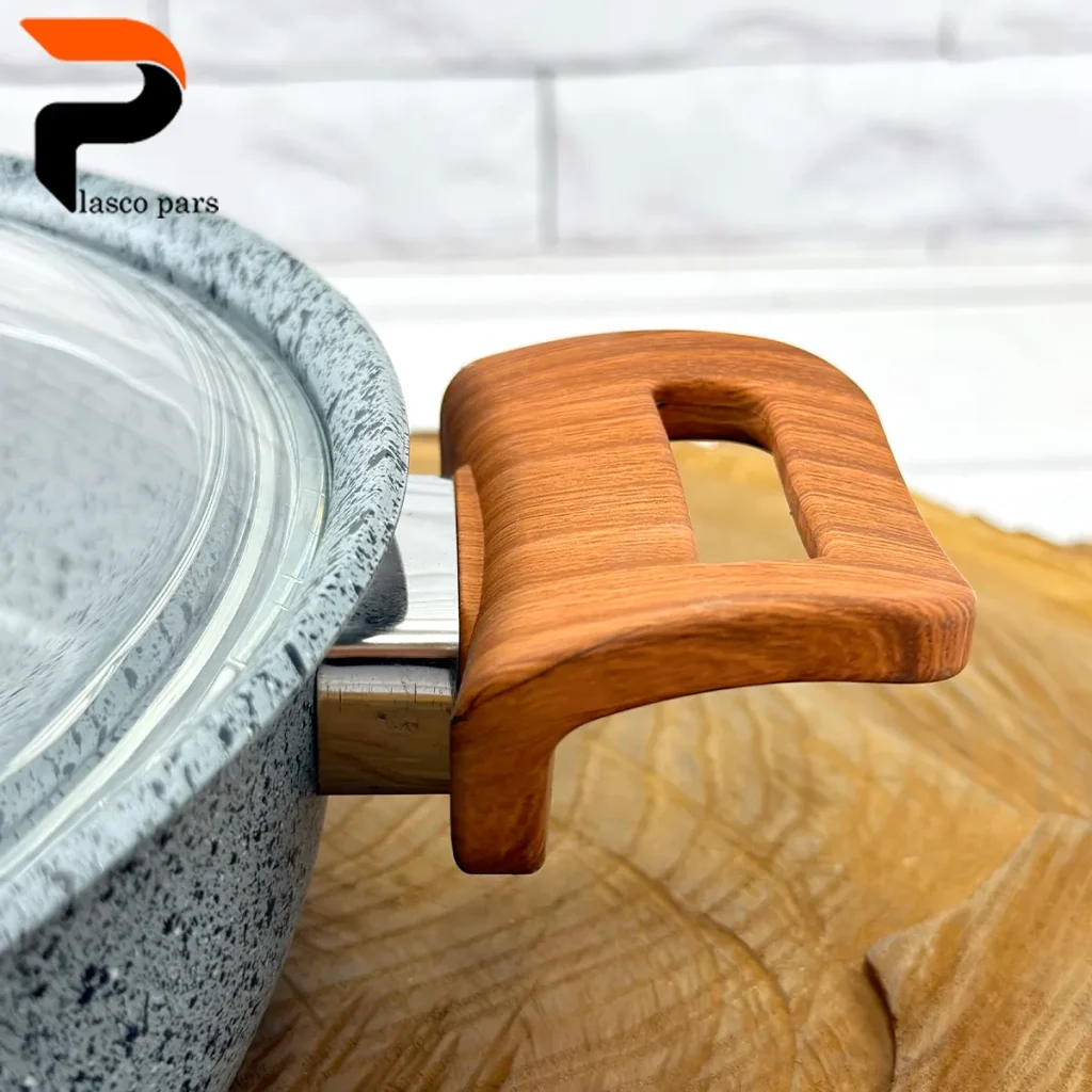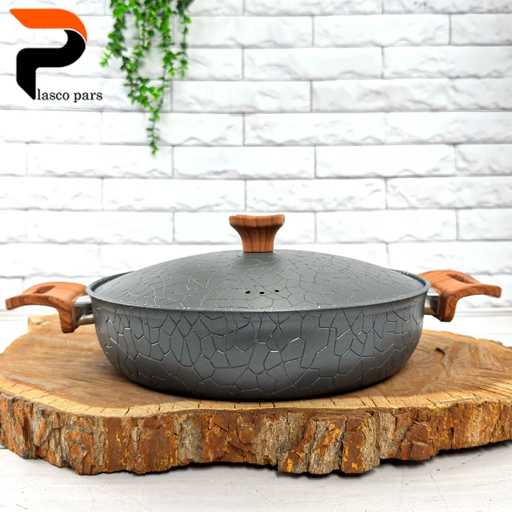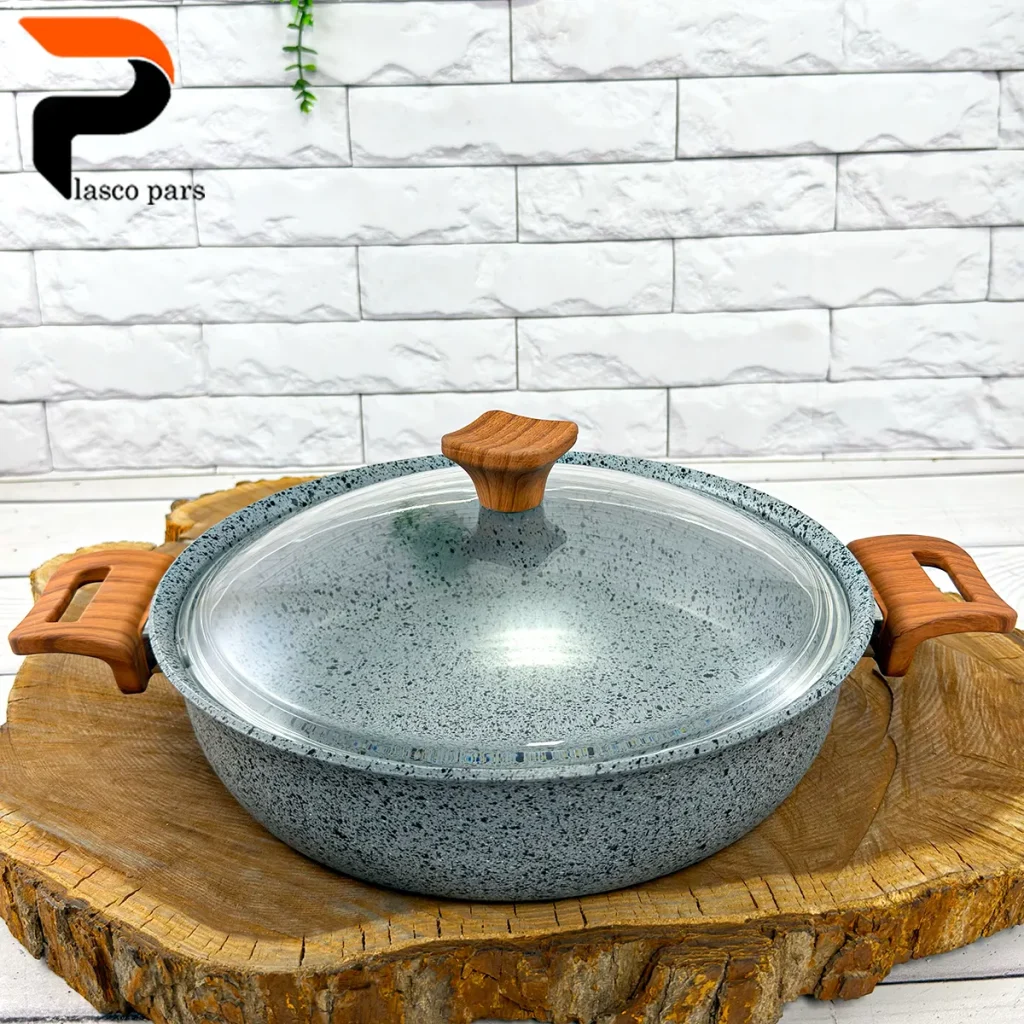 تابه 28 دودسته آنتیک دسته چوبی گرانیتی طوسی هاناتک
