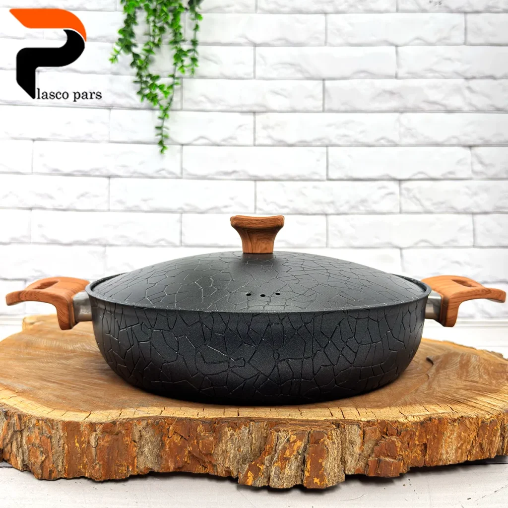 تابه 28 ونیز دودسته دسته چوبی درب پیرکس مشکی هاناتک