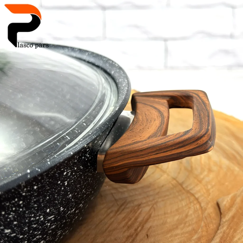 تابه 28 دودسته آنتیک دسته چوبی گرانیتی مشکی هاناتک