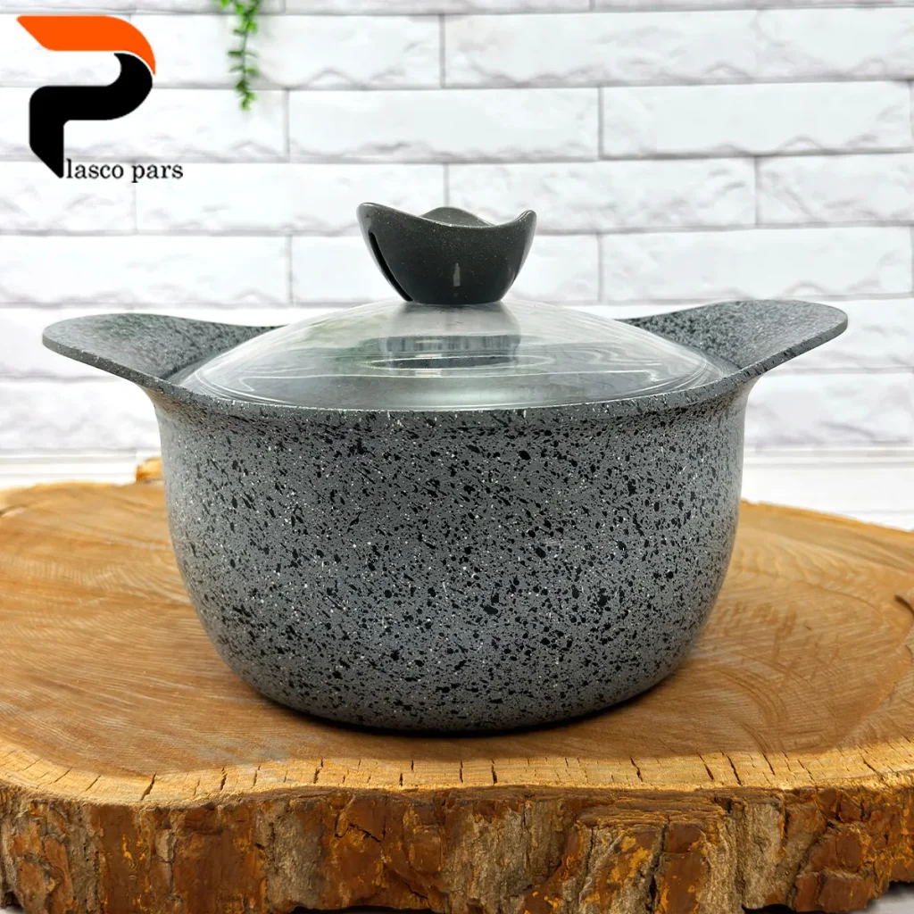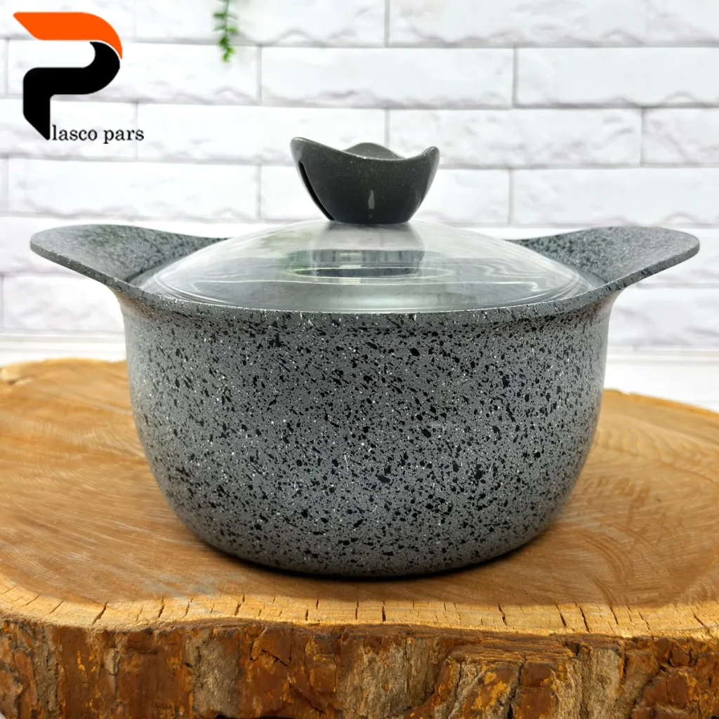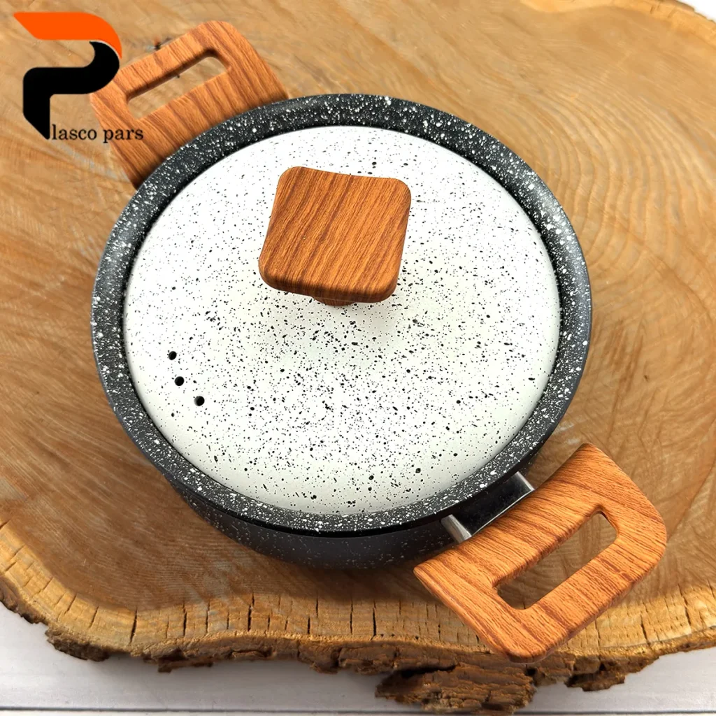 قابلمه 16 دسته چوبی گرانیتی مشکی سفید هاناتک
