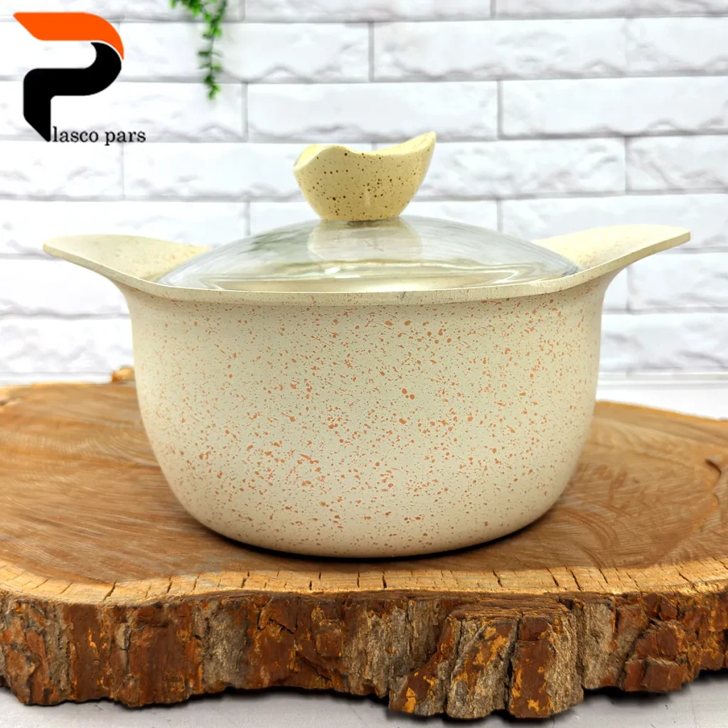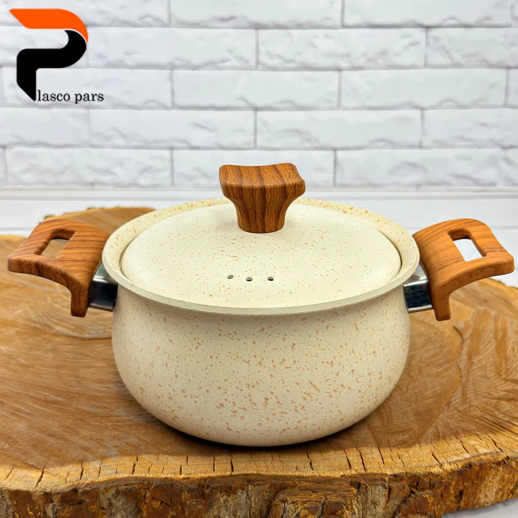 قابلمه 16 دسته چوبی گرانیتی کرمی هاناتک