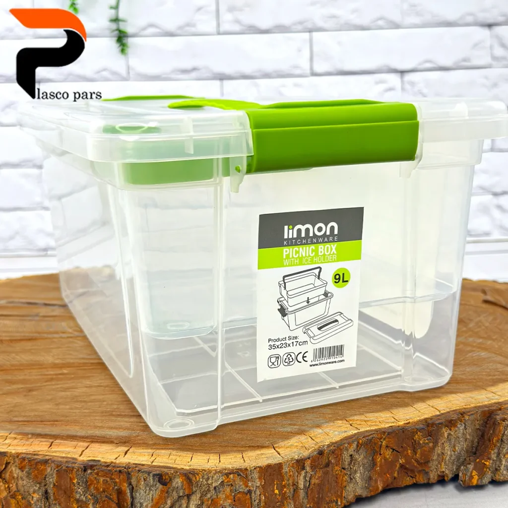 باکس مستطیل 9 لیتری با مخزن یخ دسته دار لیمون