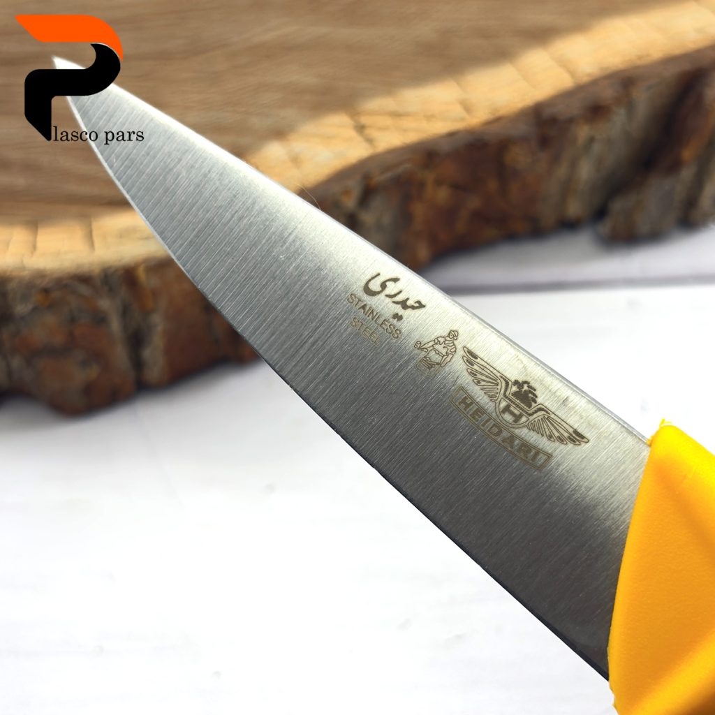 • چاقوی پوست‌گیر (Paring Knife): با تیغه‌ای کوچک برای پوست کندن میوه‌ها و سبزیجات.