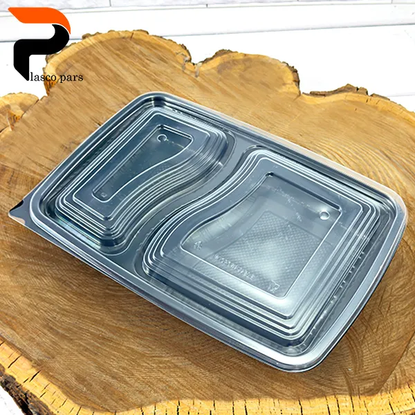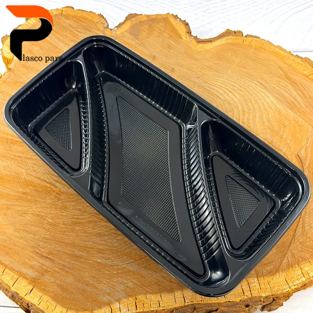 ظرف سه خانه یکبار مصرف می باشد.و قابل استفاده در ماکروویو و دارای مجوز بهداشت میباشد.