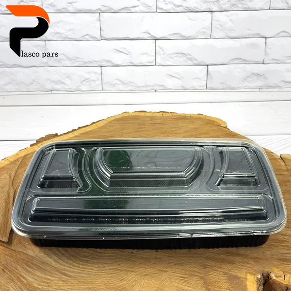 ظرف ترموفرمینگ سه خانه کد 8003 برای ظرف بیرون بر در کافه ها، رستوران ها و آماده سازی پک دفاع پایان نامه دانشگاه استفاده میشود