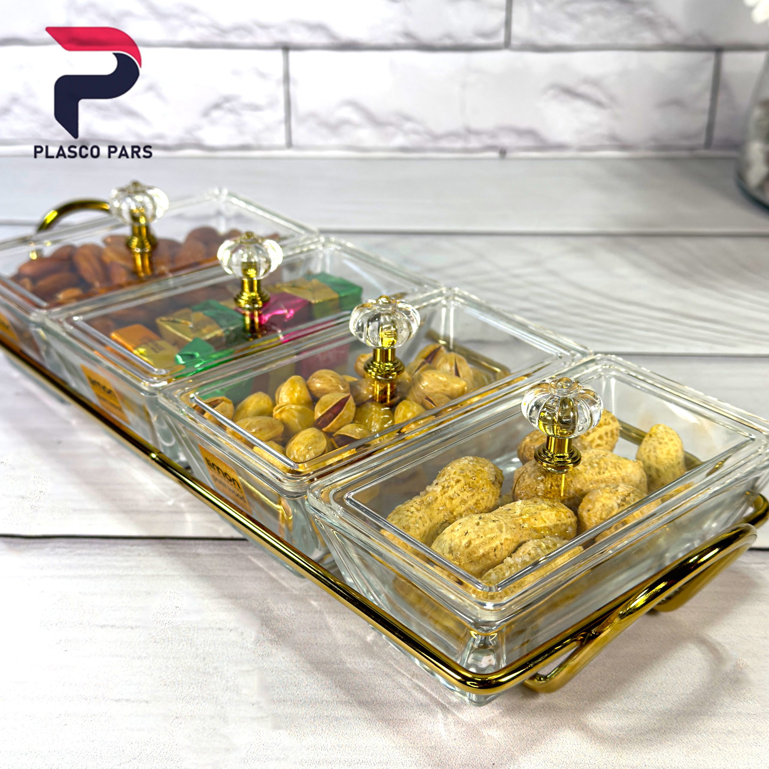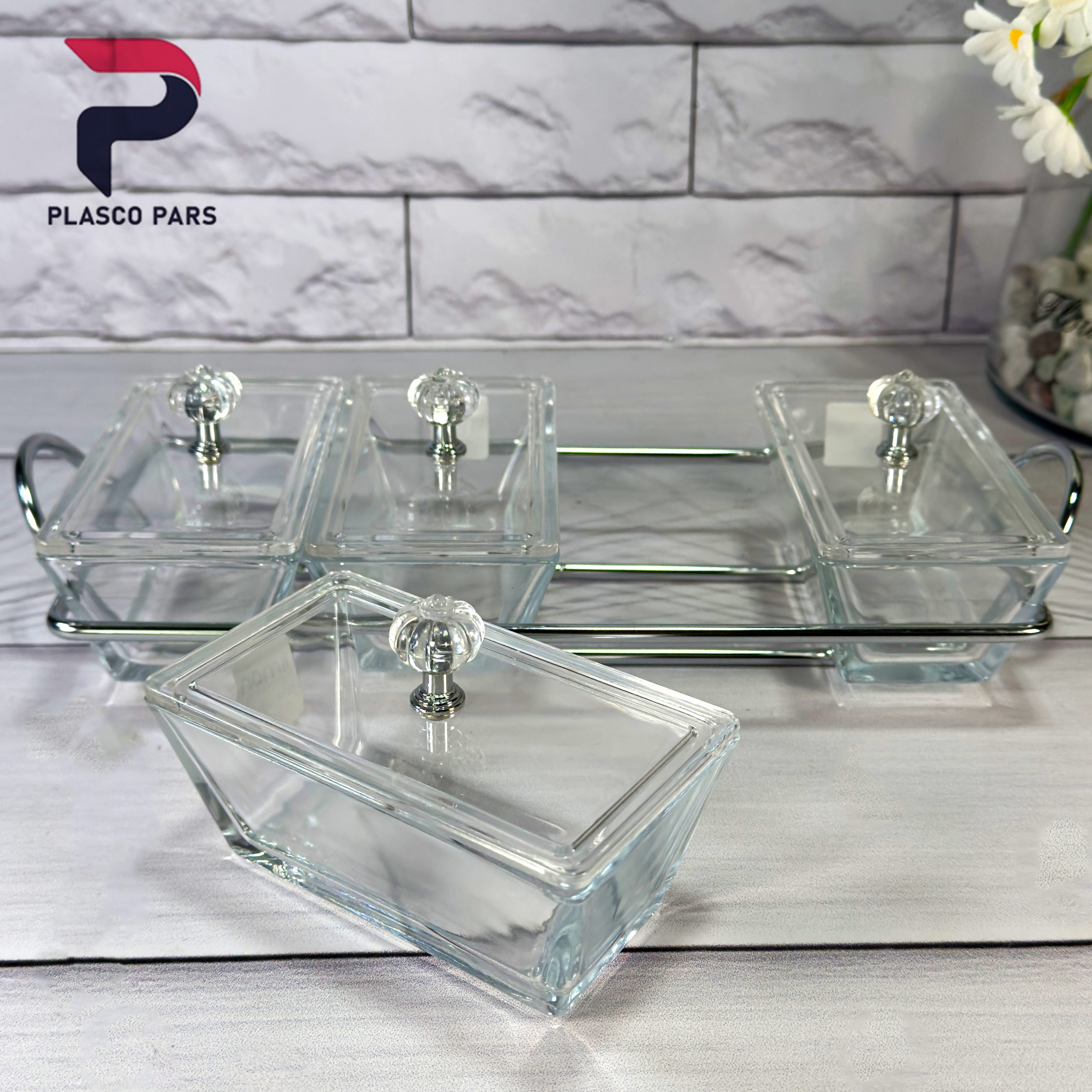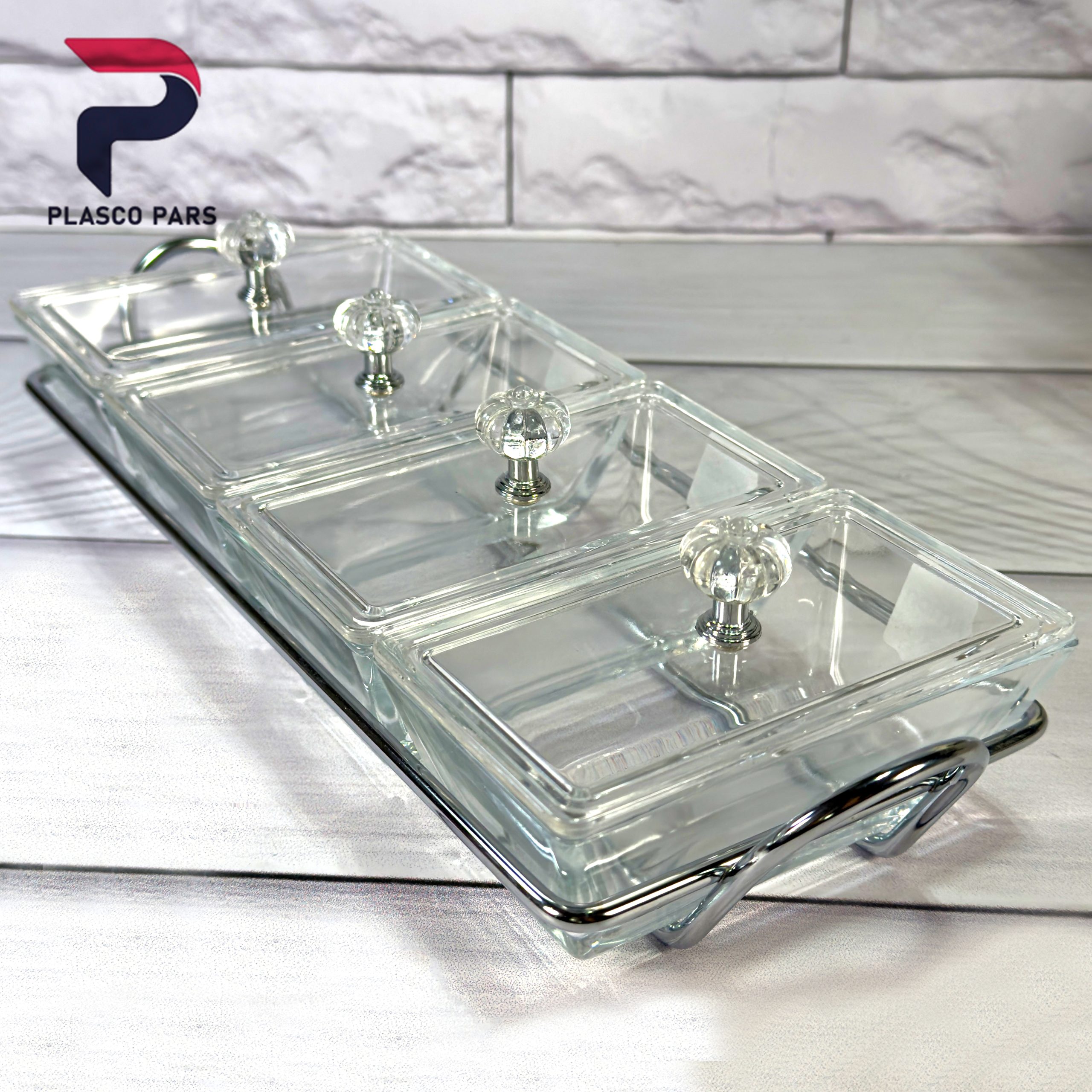 اردوخوری شیشه ای مستطیل 4 خانه لیمون