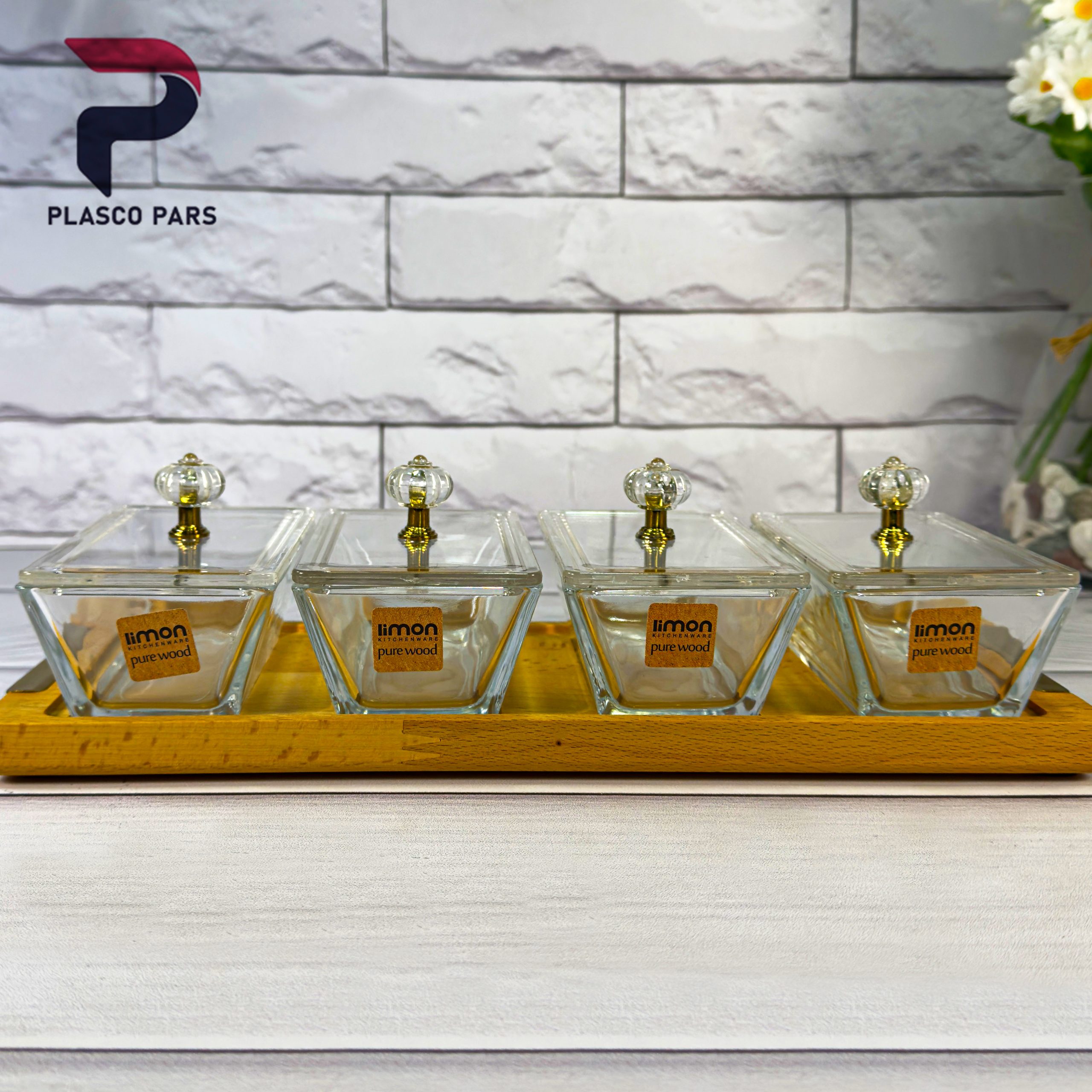 اردو خوری مستطیل 4 خانه پایه چوبی لیمون