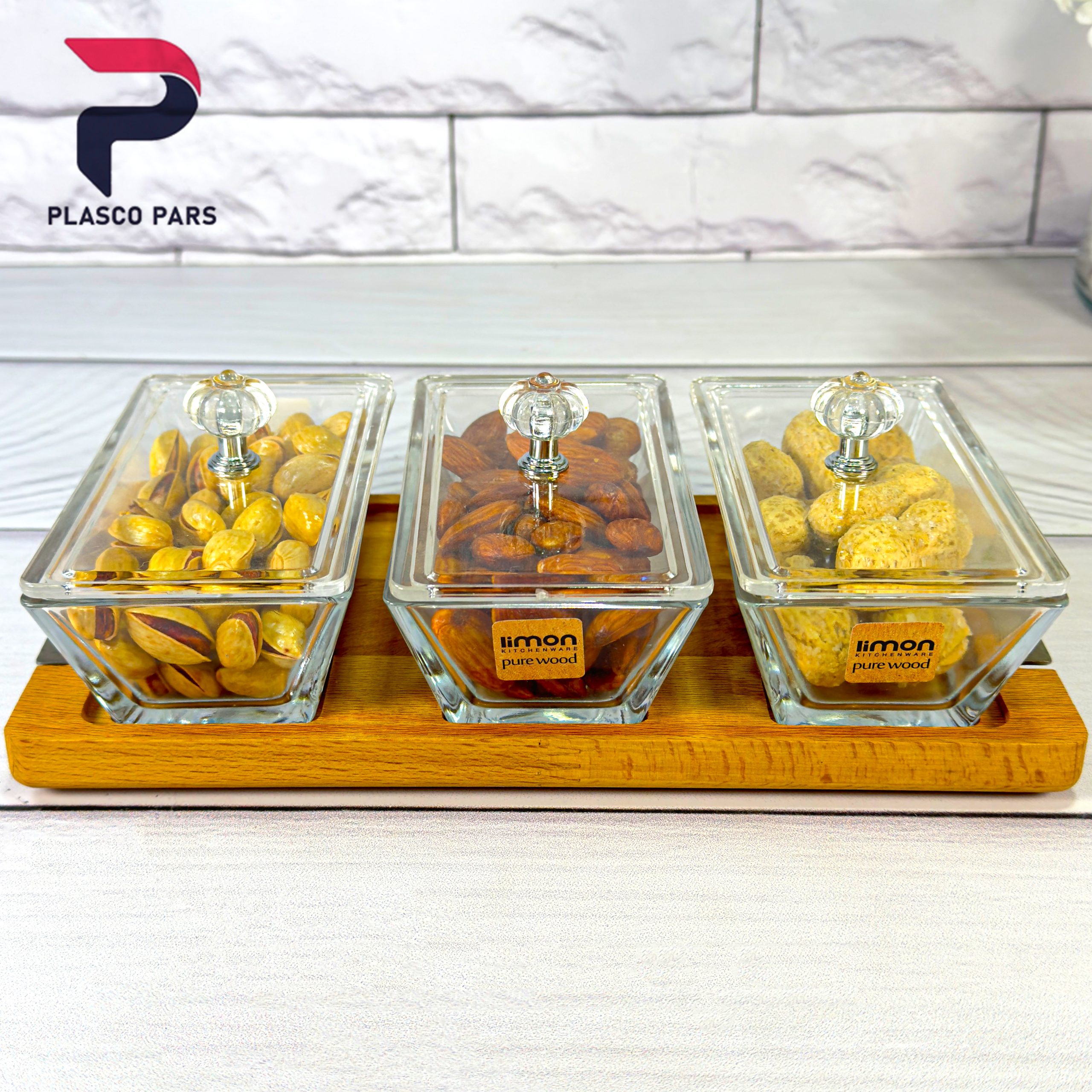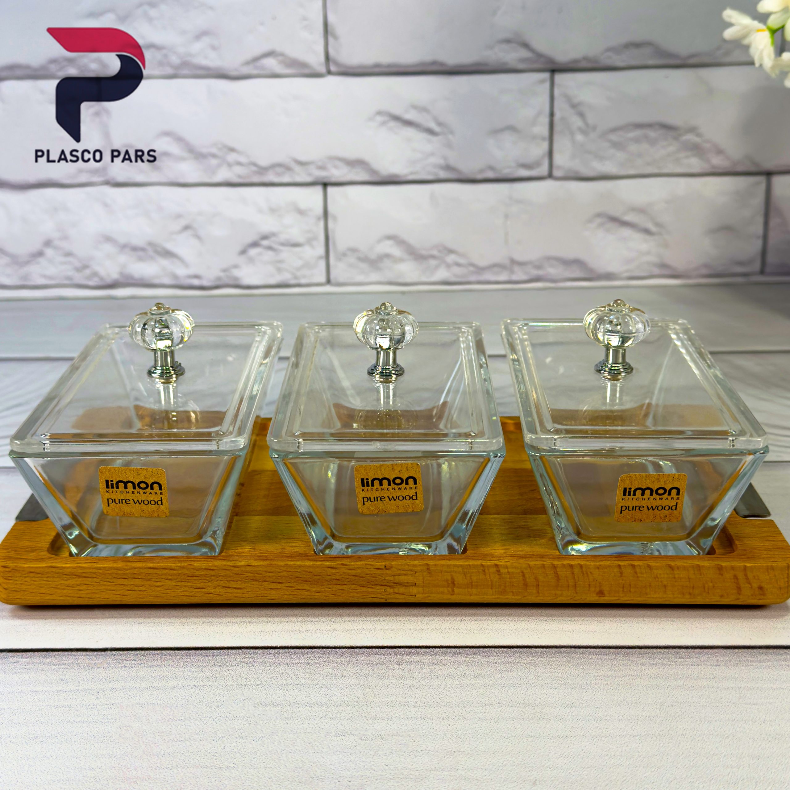 اردو خوری 3 خانه مستطیل پایه چوبی لیمون