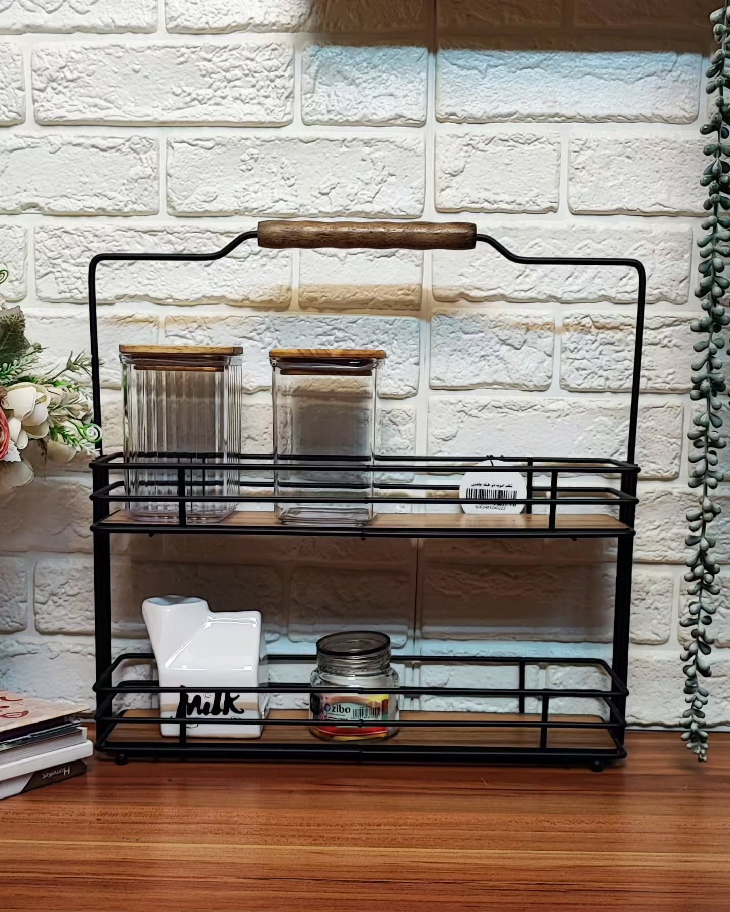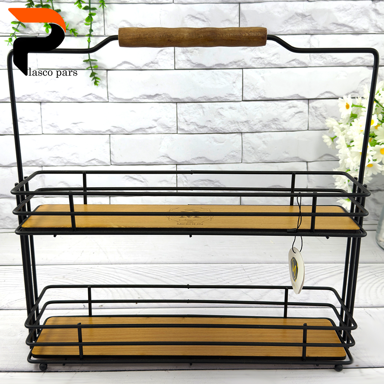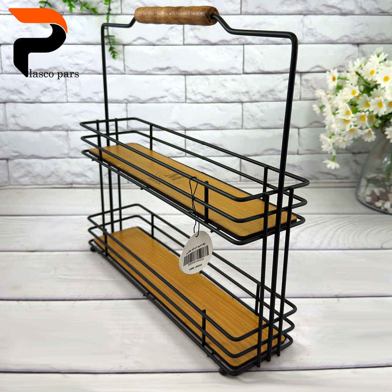 شلف ادویه چاشنی استفاده شده از مفتول با قطر مناسب که استحکام کافی را تامین میکند، انتخابی خوب برای نگهداری جا ادویه و بانکه های داخل آشپزخانه شماست. رنگ مشکی و ترکیب آن با چوب زیبایی آنرا دوچندان کرده است.رنگ محصول کوره ای ضد خش و چوب ضد آب استفاده شده است که خیال خریدار را از کیفیت راحت کرده ،طراحی محصول کاملا بروز و مطابق با عکس کالا میباشد.