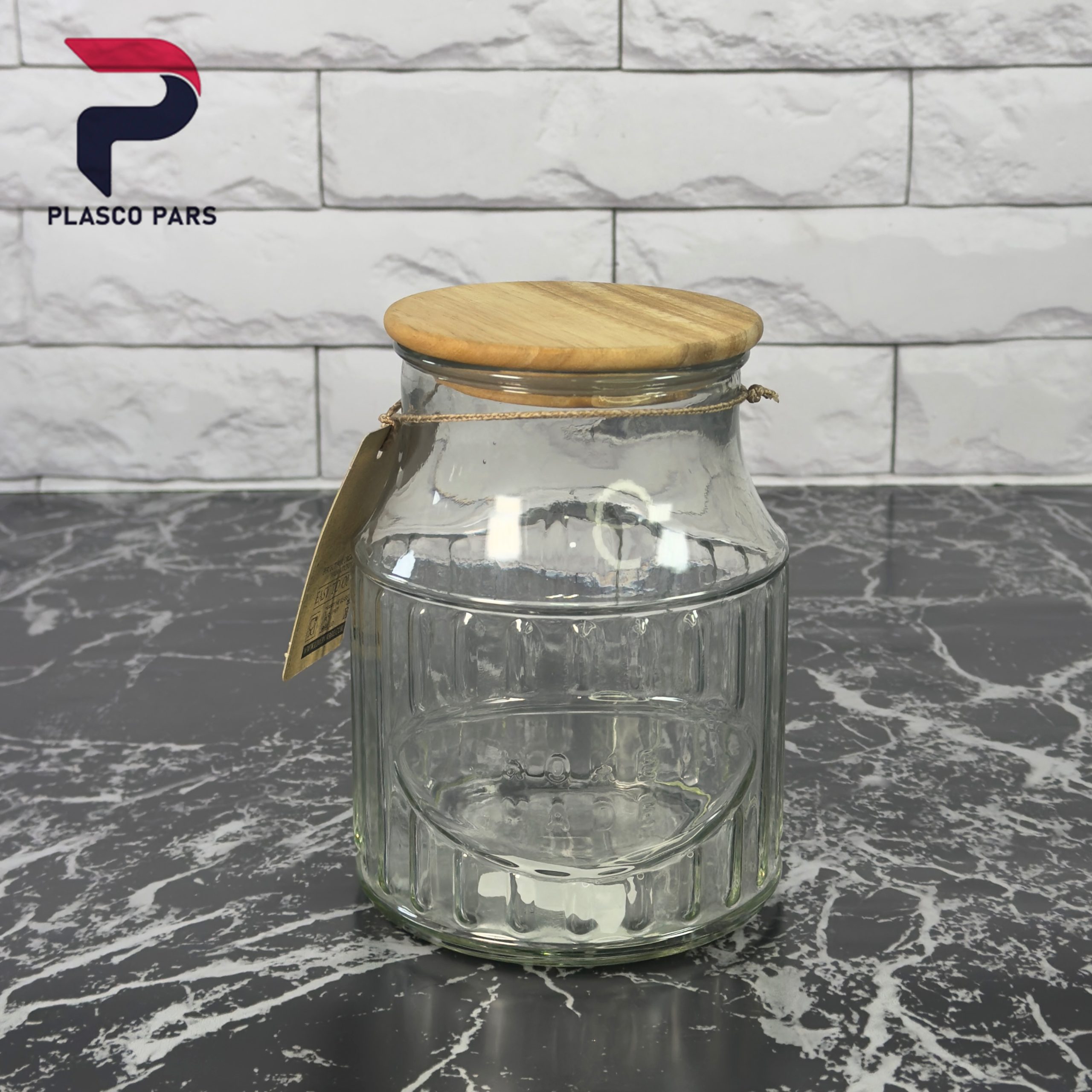 بانکه شیشه ای 1 لیتری درب چوبی لیمون