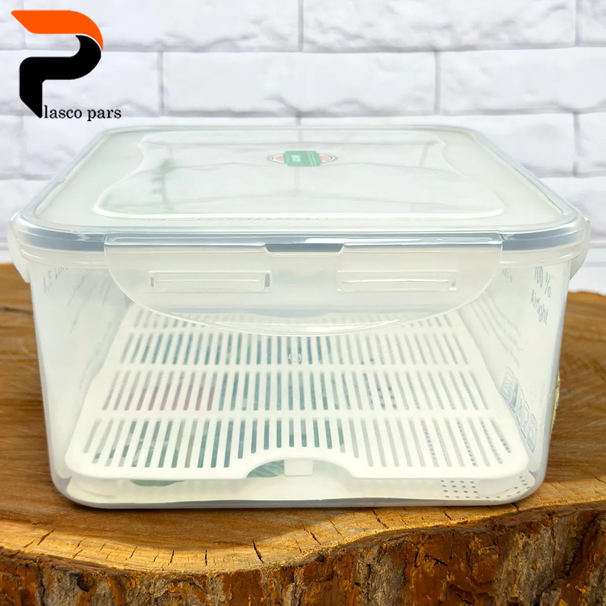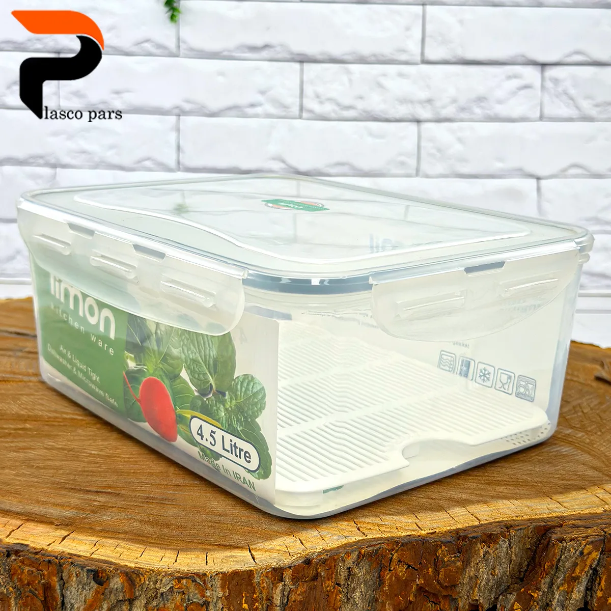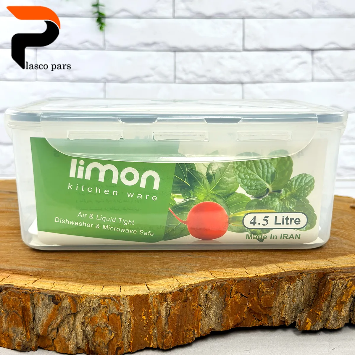 باکس سبزیجات مستطیل لیمون مناسب برای نگهداری مواد غذایی و سبزیجات به مدت طولانی می باشد. این محصول دارای یک سبد آبگیر بوده و همچنین دارای نوار سیلیکون دور در برای جلوگیری از تبادل هوا است که موجب محافظت مواد غذایی در برابر باکتری های هوازی می شود. تحمل دمایی بین 20- تا 120+ درجه سانتیگراد که قابلیت استفاده در یخچال فریزر و مایکروویو جهت گرم کردن غذا را دارد. برای استفاده در مایکروویو باید ظرف را بدون در استفاده کرد.