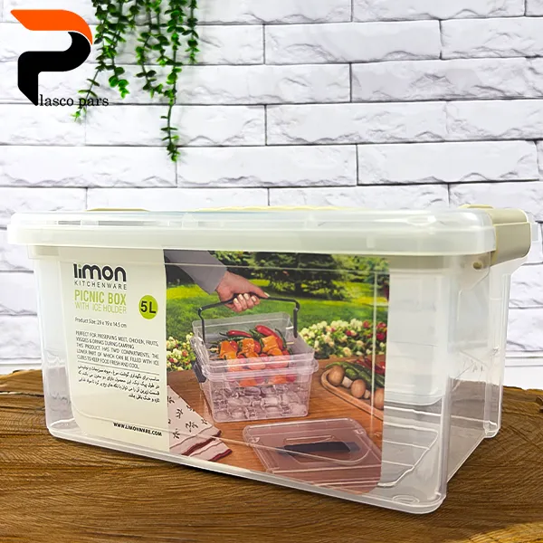 باکس مستطیل 5 لیتری با مخزن یخ دسته دار لیمون