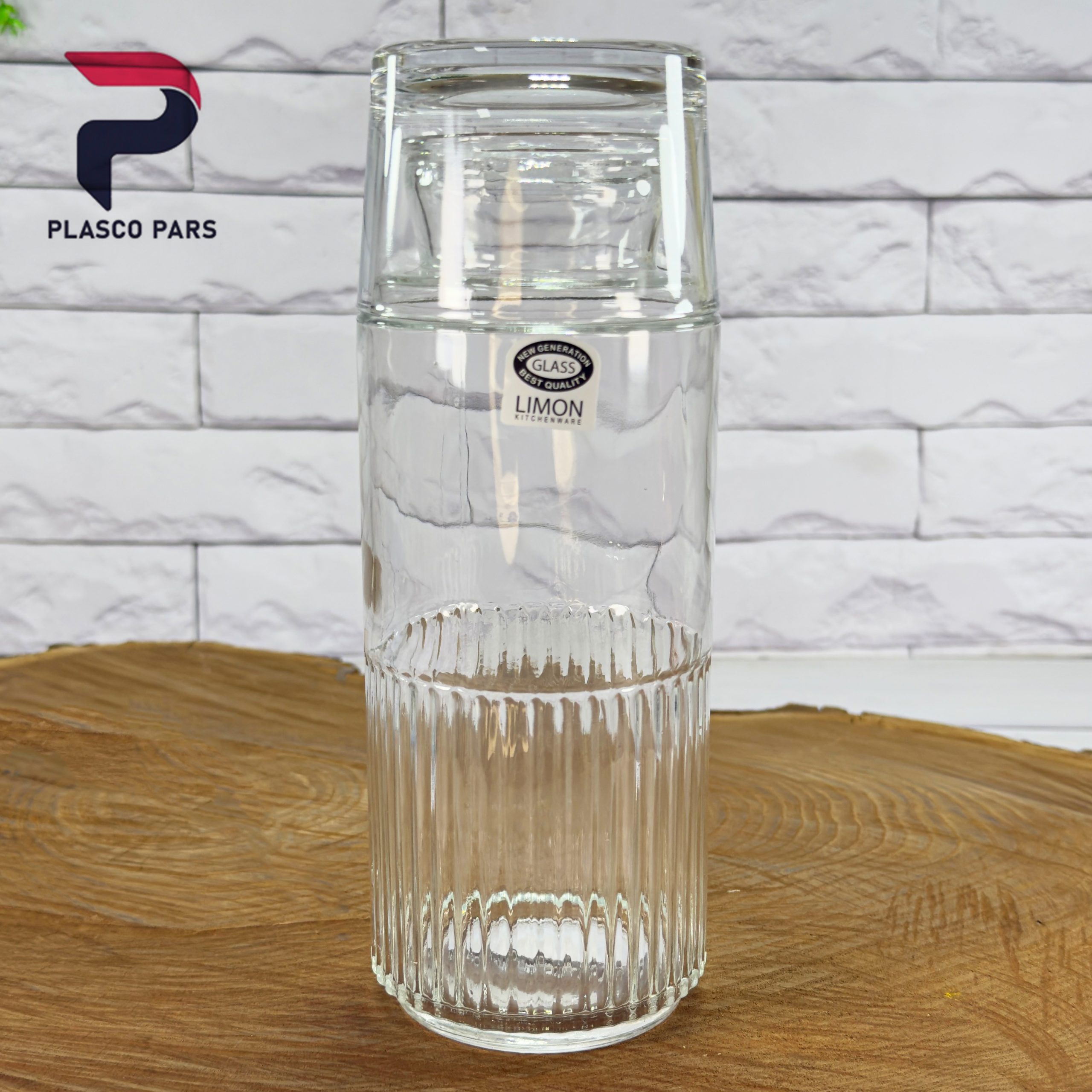 بطری و لیوان 800 میل شیشه ای شیاردار لیمون