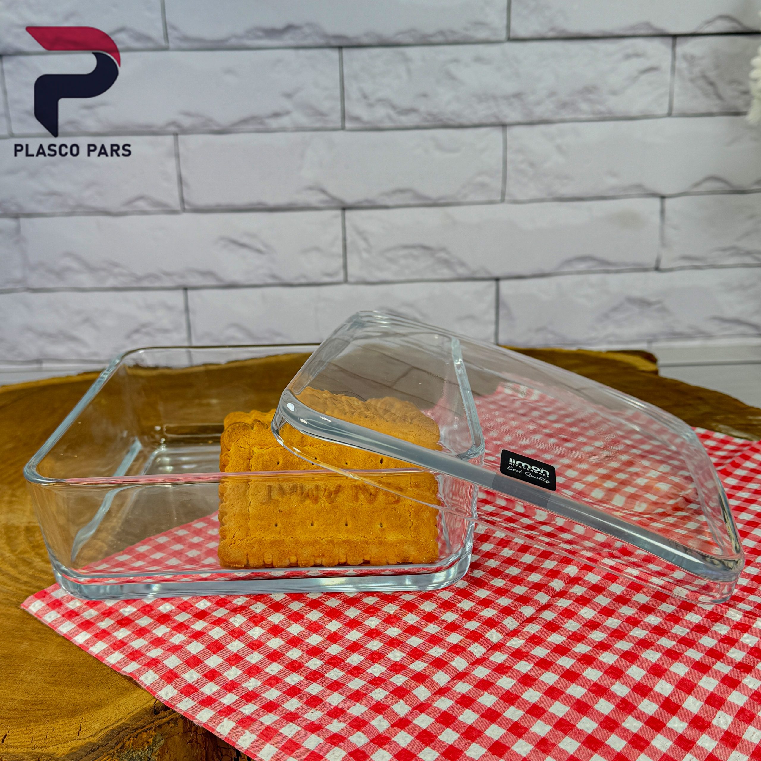 بیسکوییت خوری مربع شیشه ای درب دار لیمون