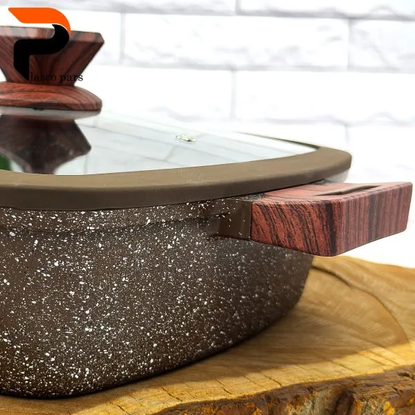سرویس قابلمه با طراحی و فریم متفاوت از برند معتبر UCC LIFE روکش نانو گرانیت ضد خش و صد در صد نچسب ساخته شده با تکنولوژی آلمان دسته ها باکالیت نسوز درب آنتی شوک نشکن با واشر سیلیکونی