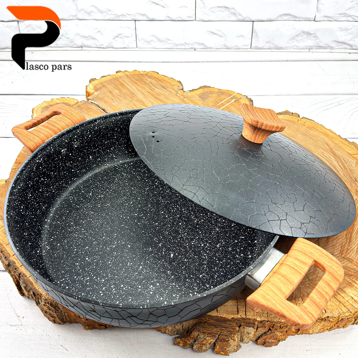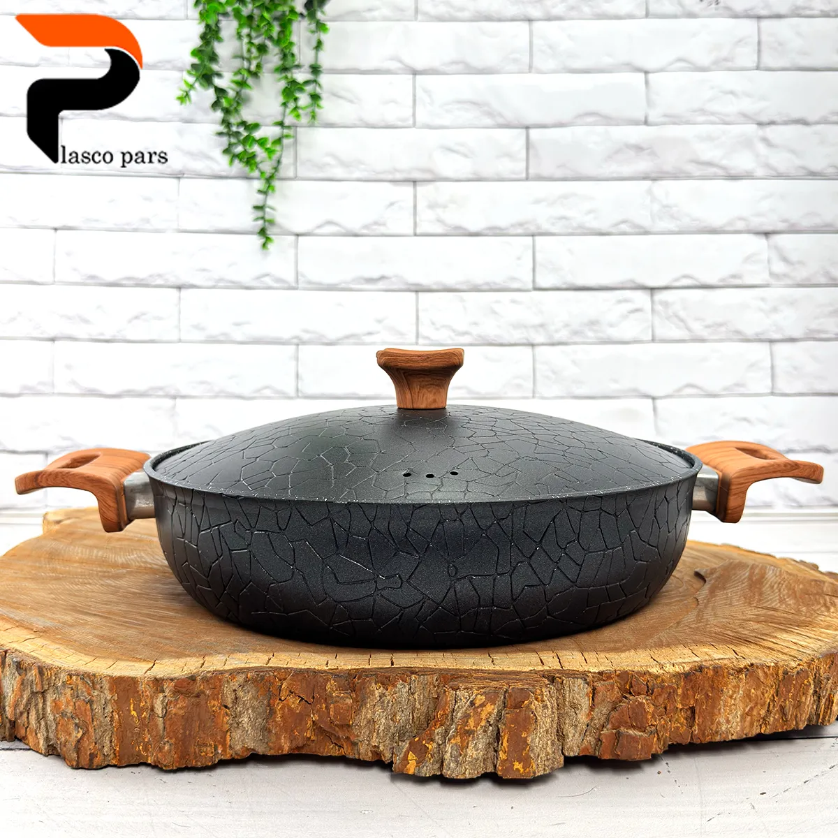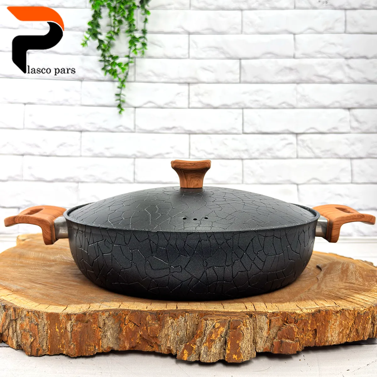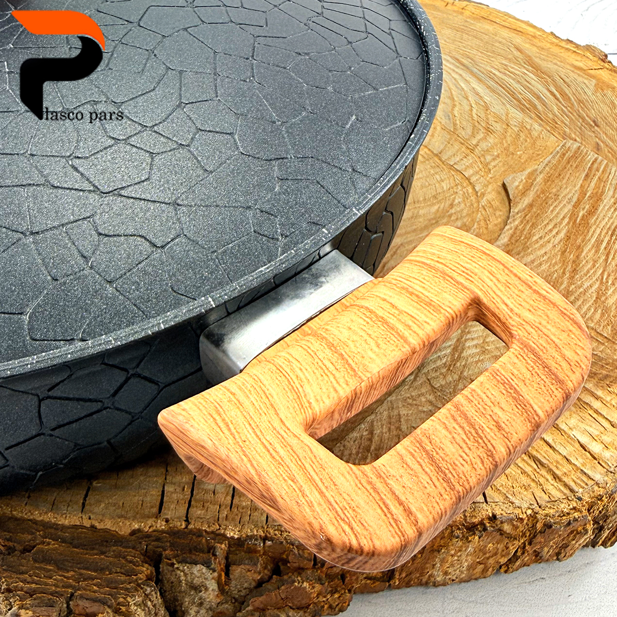 تابه 28 دودسته آنتیک دسته چوبی گرانیتی مشکی هاناتک