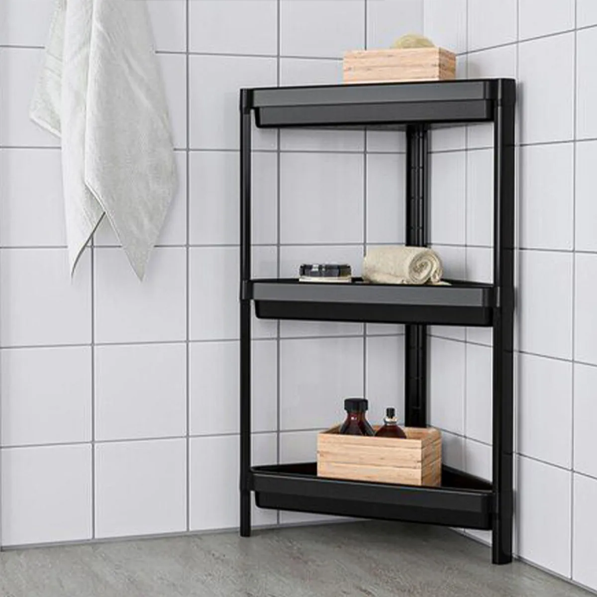 این محصول از جنس پلاستیک فشرده و بسیار با کیفیت است که نیازی به نصب به دیوار ندارد و این مدل کاملا زمینی می باشد و به علت داشتن حالت مثلثی در کنجی حمام و آشپزخانه قرار می گیرد.