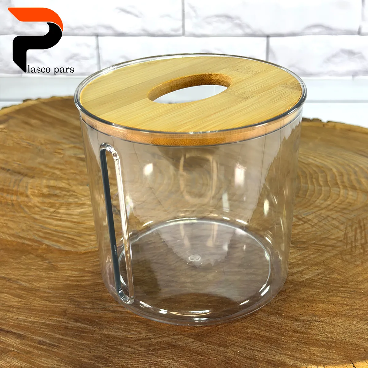 جعبه دستمال کاغذی اکرولیک بسیار با کیفیت و شفاف دارای درب بامبو اصل که این جعبه دستمال دارای دو شیار برای خروج دستمال می باشد یکی روی درب آن شیار و دومی روی دیواره جعبه استوانه تعبیه شده است، که به خاطر این ویژگی این جعبه قابلیت دستمال مربع و رولی را نیز دارد این کالا وارداتی می باشد. و همچنین چوب اصلی آن که بامبو می باشد قابل شستشو است.