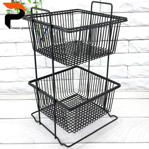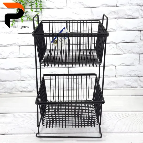 جای سیب زمینی پیاز مربع دو طبقه فلزی با کیفیت مناسب محکم و با دوام رنگ مشکی