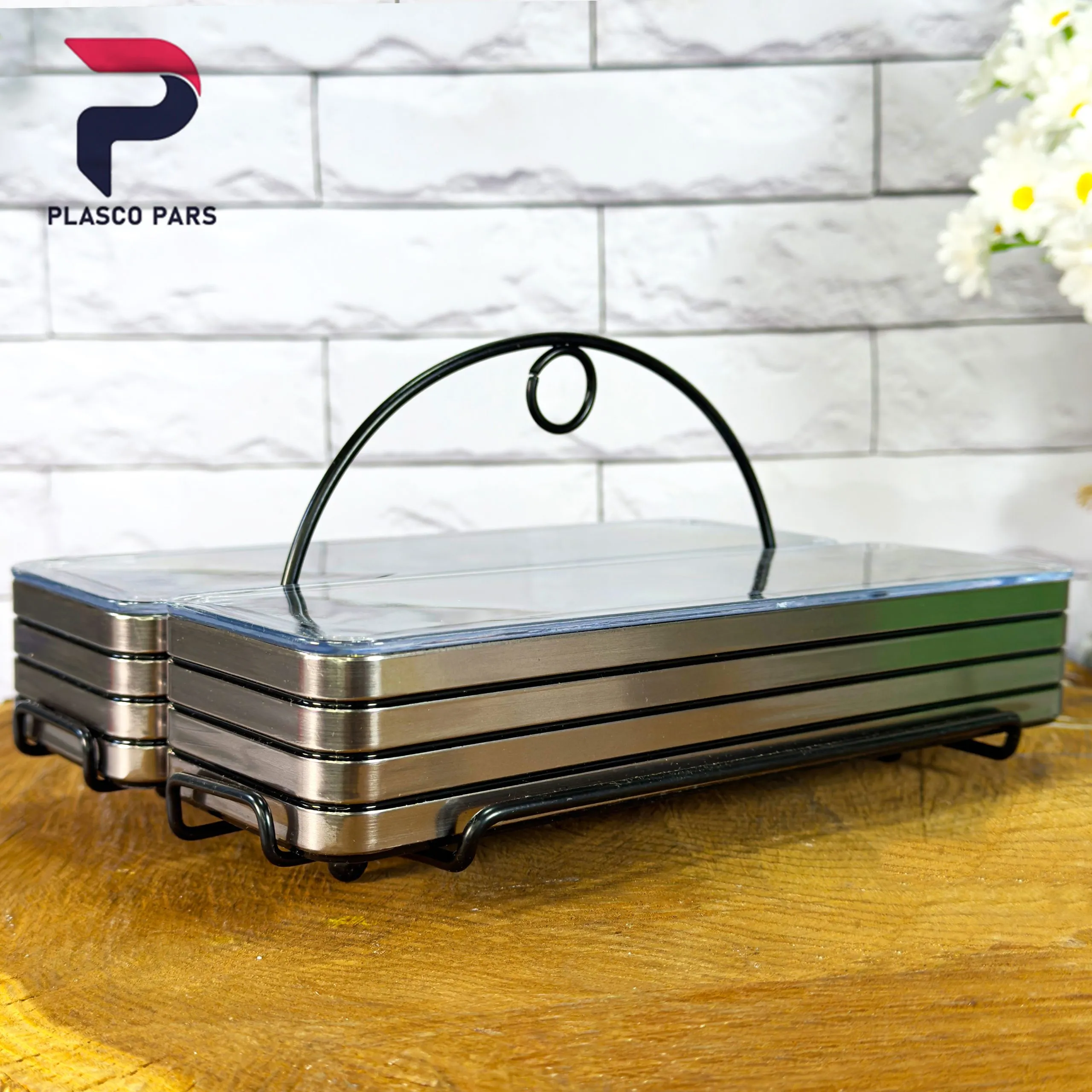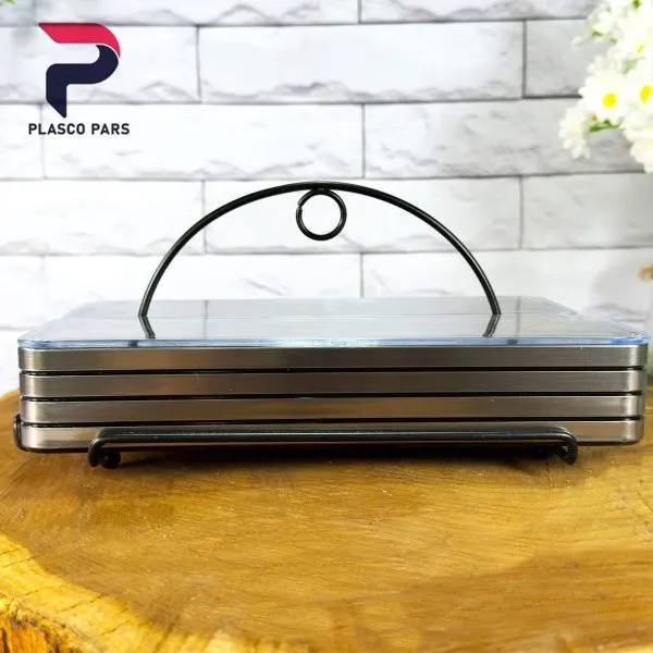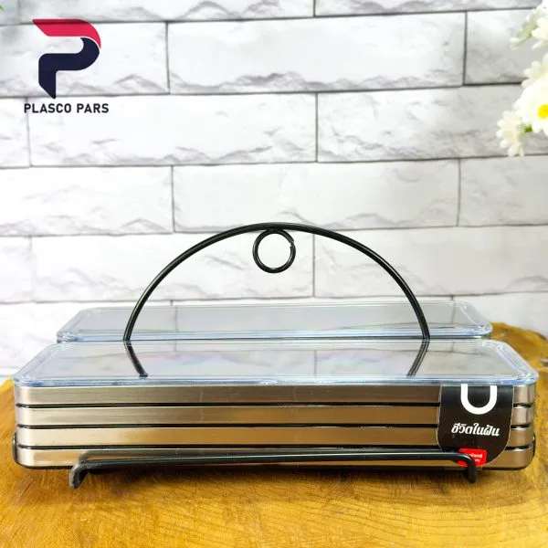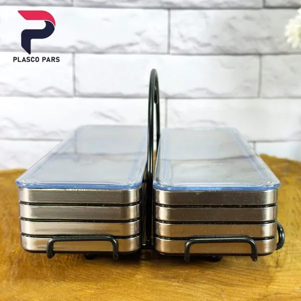 جا کارد و چنگال دو قلو تایلندی بازن، جای قاشق از جنس پلاستیک و استند از جنس فلز است. این محصول درب دار می باشد.