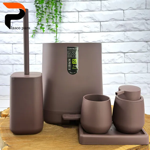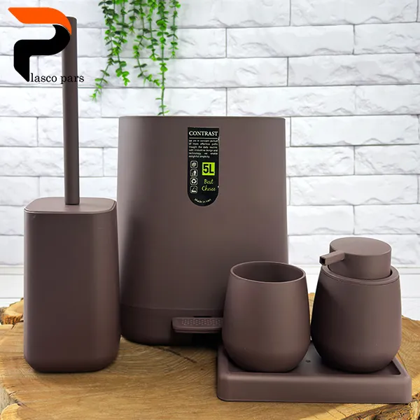 5 پارچه شامل: سطل زباله درب دار، جامایع پمپی، جای مسواک و خمیردندان (همراه با سینی نگهدارنده) و برس/ فرچه شستشو سرویس بهداشتی