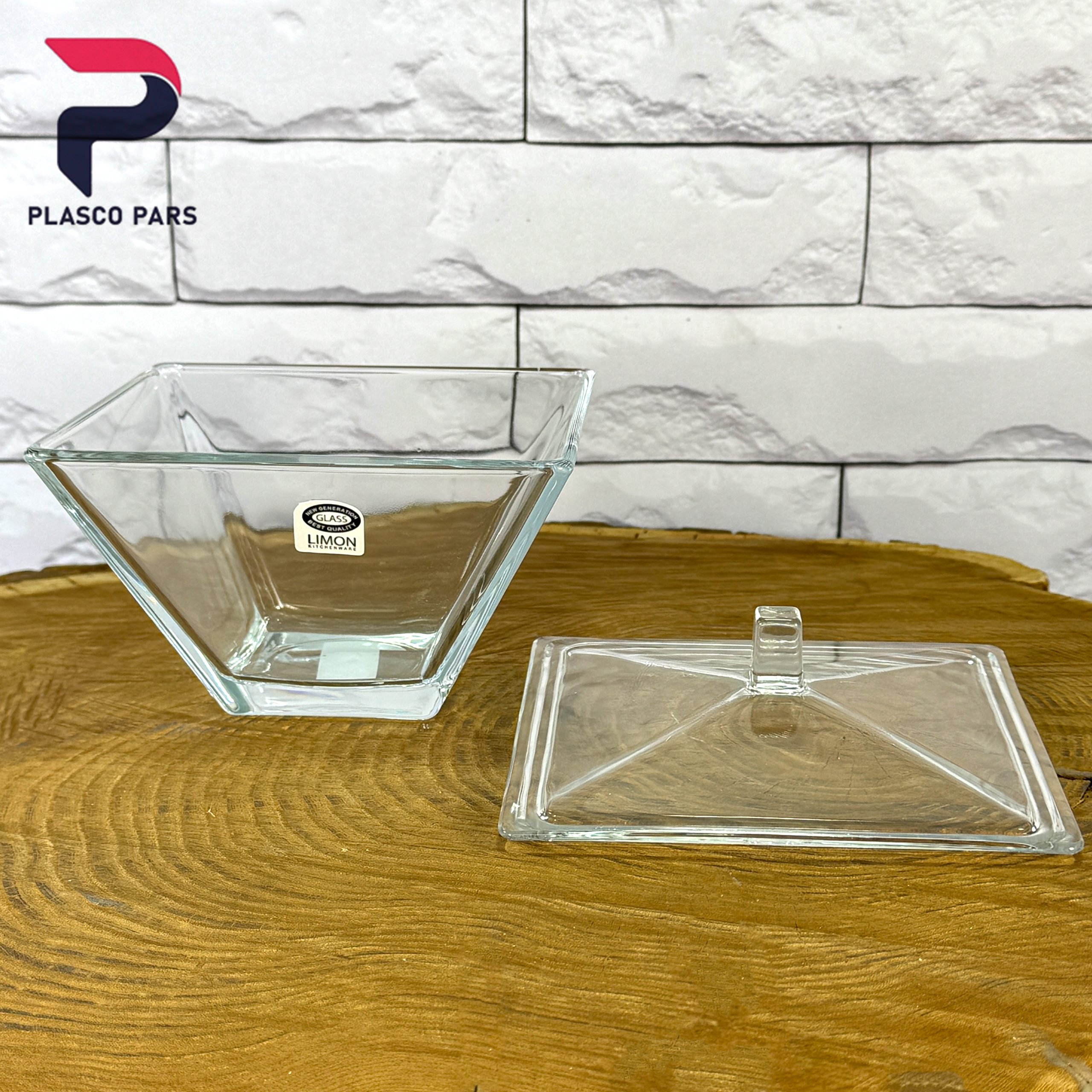 شکلات خوری شیشه ای مربع دربدار لیمون