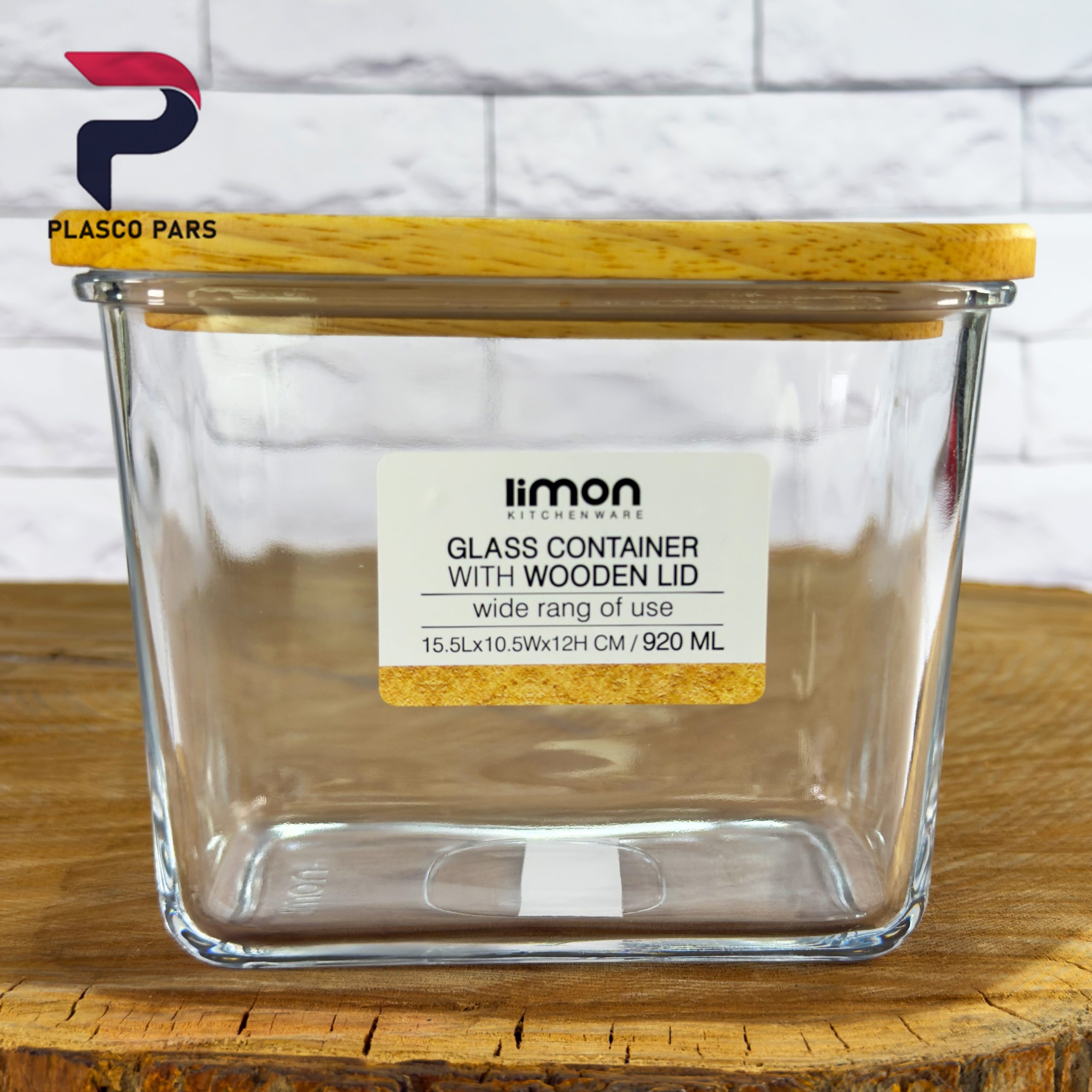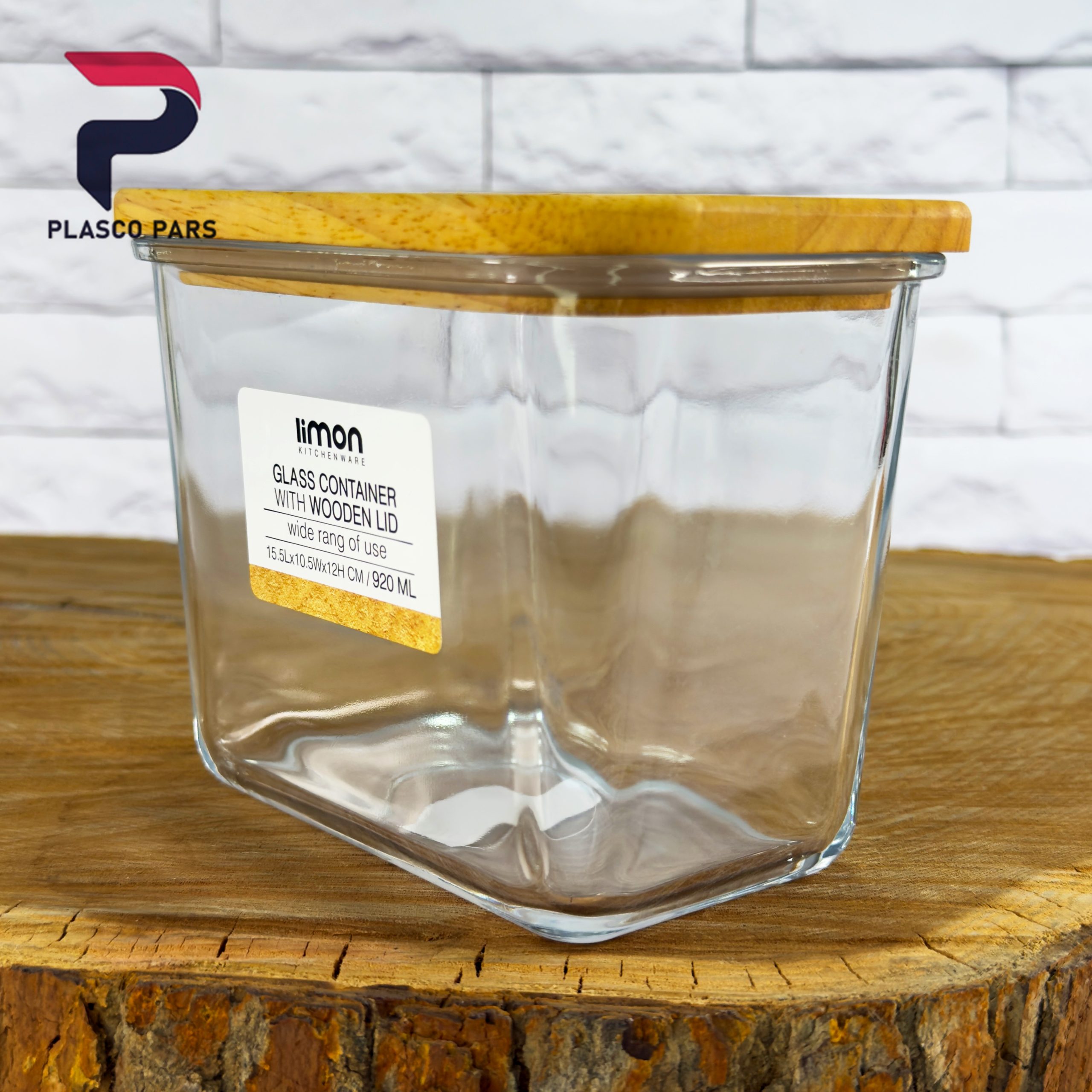 ظرف شیشه ای 920میل درب چوبی لیمون