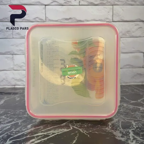 جنس این ظرف از پلاستیک درجه یک و بهداشتی است که هیچگونه بو یا مواد مضر به غذا منتقل نمیکند. همچنین این ظرف در برابر دماهای بالا و پایین مقاوم بوده و برای استفاده در یخچال، فریزر و حتی مایکروویو (بدون درب) مناسب است. درب قفلشونده و کاملاً کیپ این محصول، از ورود هوا و نشت مواد غذایی جلوگیری میکند و به حفظ تازگی و کیفیت مواد غذایی کمک میکند.