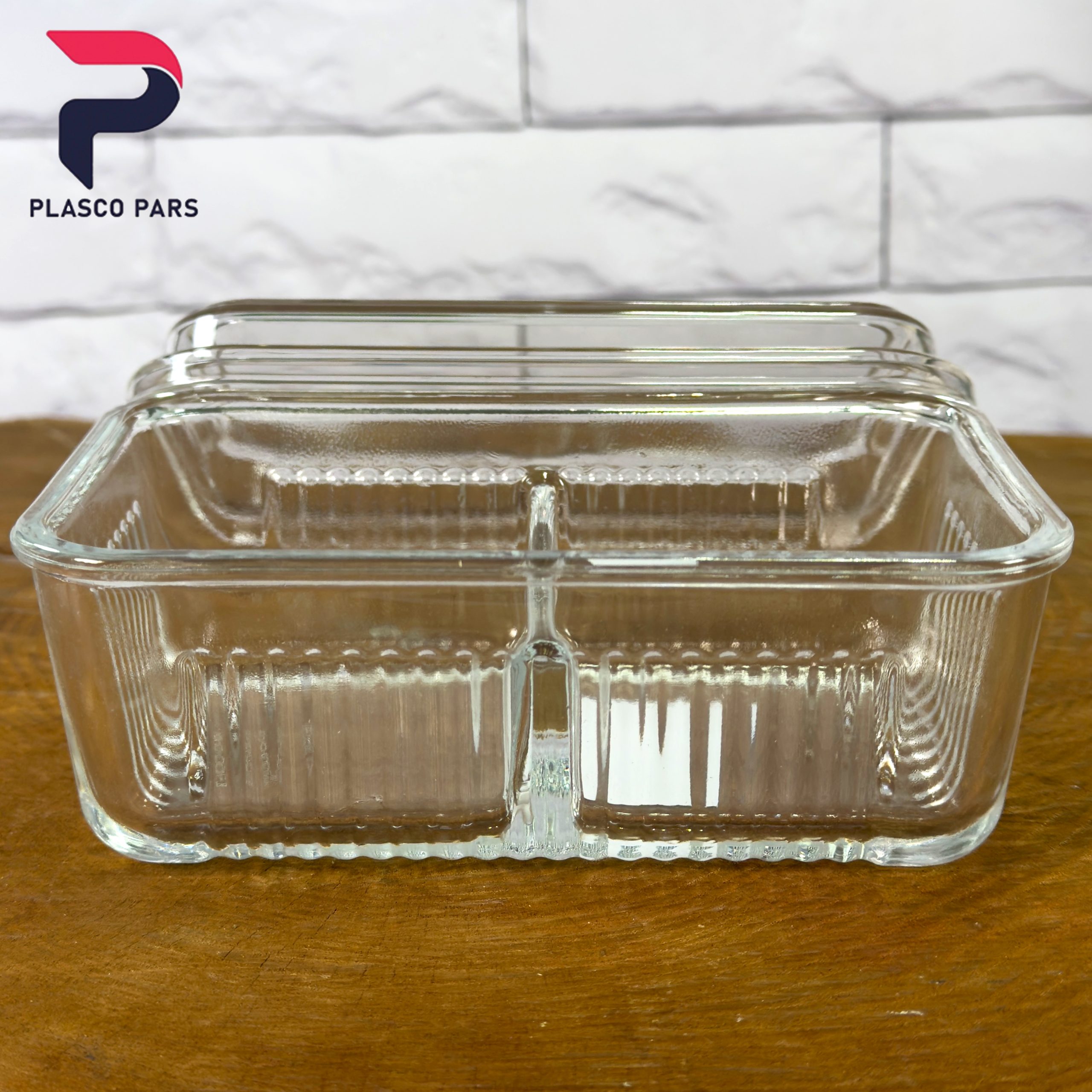 ظرف کره خوری شیشه ای 2 خانه لیمون
