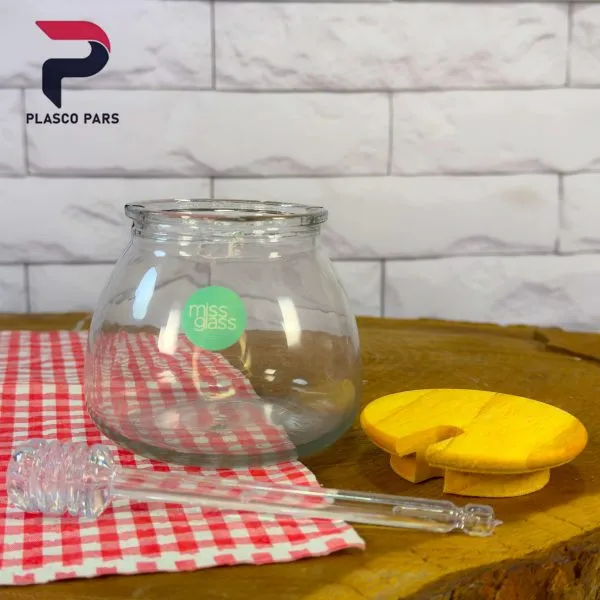 - جنس : بانکه عسل شیشه درب و قاشق عسل چوب