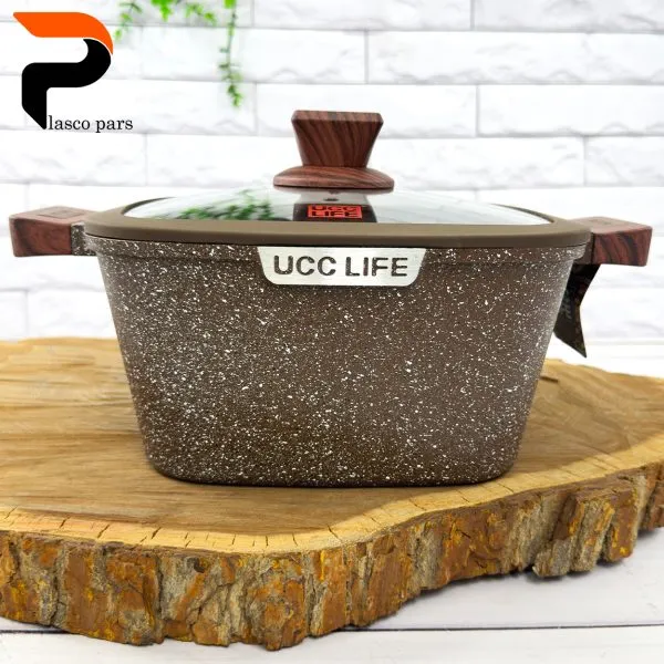 سرویس قابلمه با طراحی و فریم متفاوت از برند معتبر UCC LIFE روکش نانو گرانیت ضد خش و صد در صد نچسب ساخته شده با تکنولوژی آلمان دسته ها باکالیت نسوز درب آنتی شوک نشکن با واشر سیلیکونی