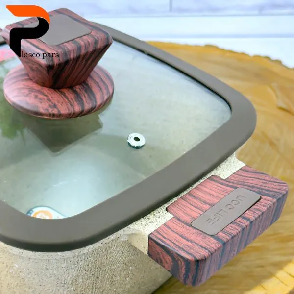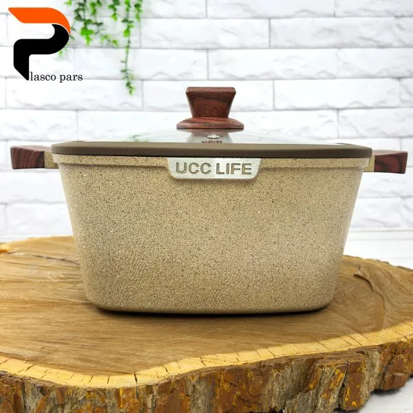 سرویس قابلمه با طراحی و فریم متفاوت از برند معتبر UCC LIFE روکش نانو گرانیت ضد خش و صد در صد نچسب ساخته شده با تکنولوژی آلمان دسته ها باکالیت نسوز درب آنتی شوک نشکن با واشر سیلیکونی