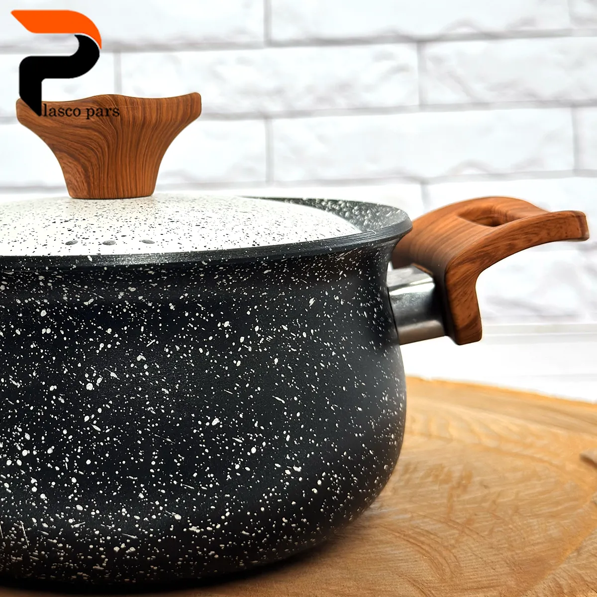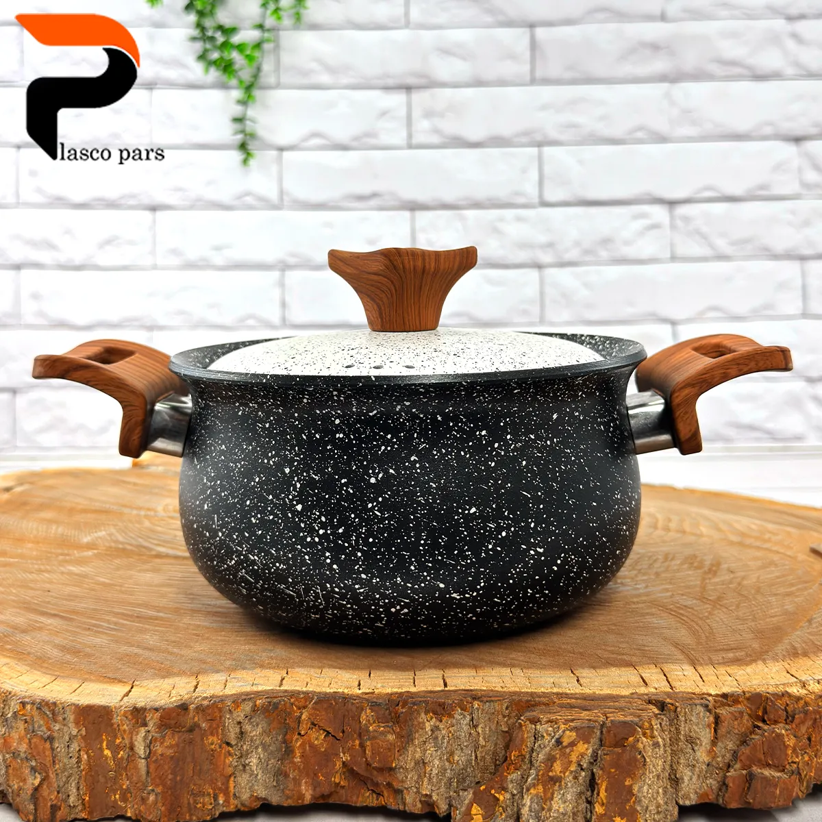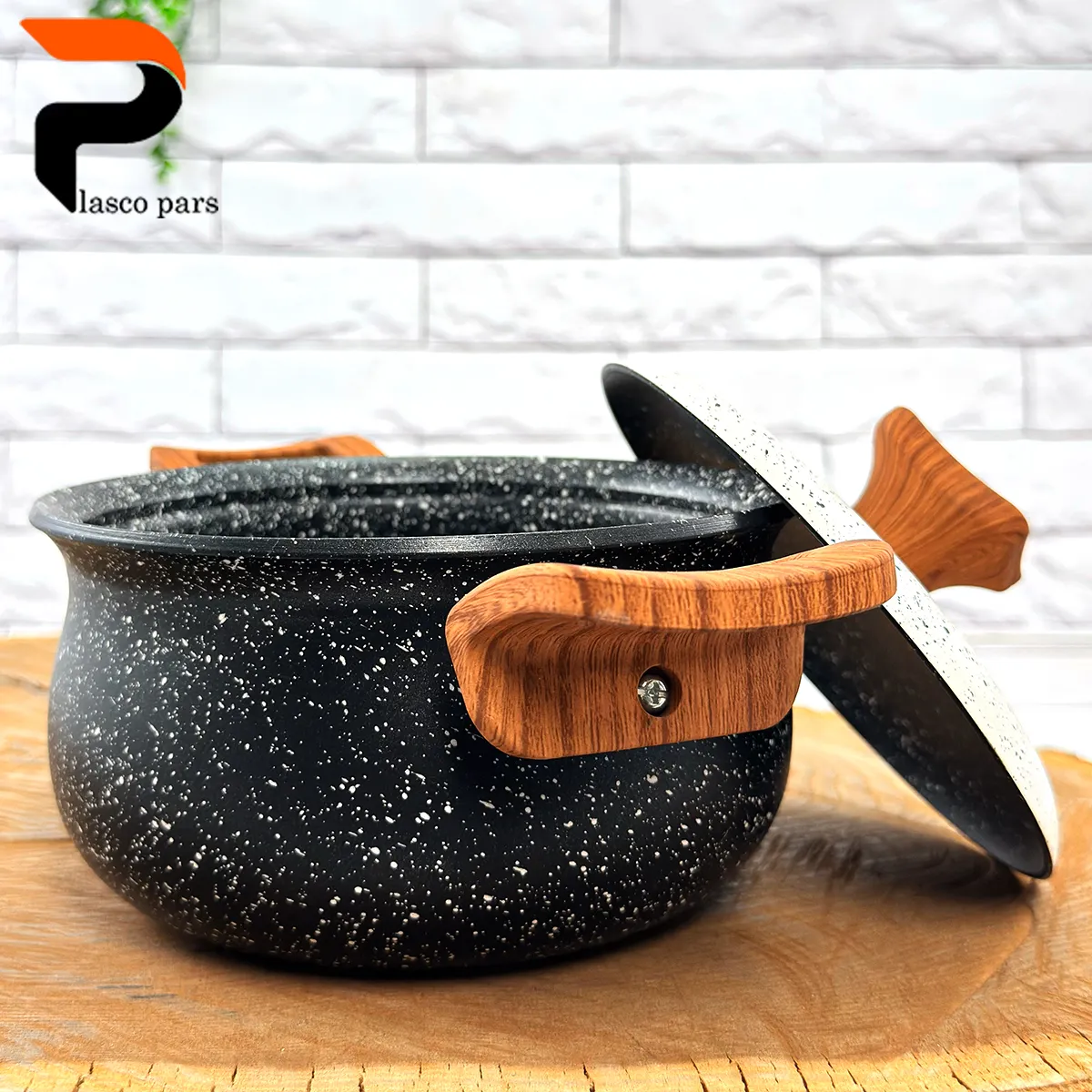 قابلمه 16 دسته چوبی گرانیتی مشکی سفید هاناتک