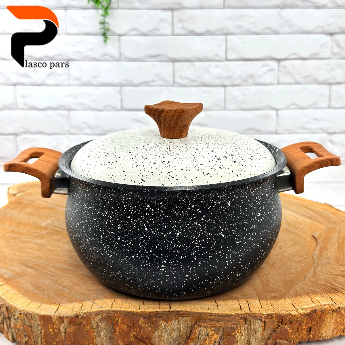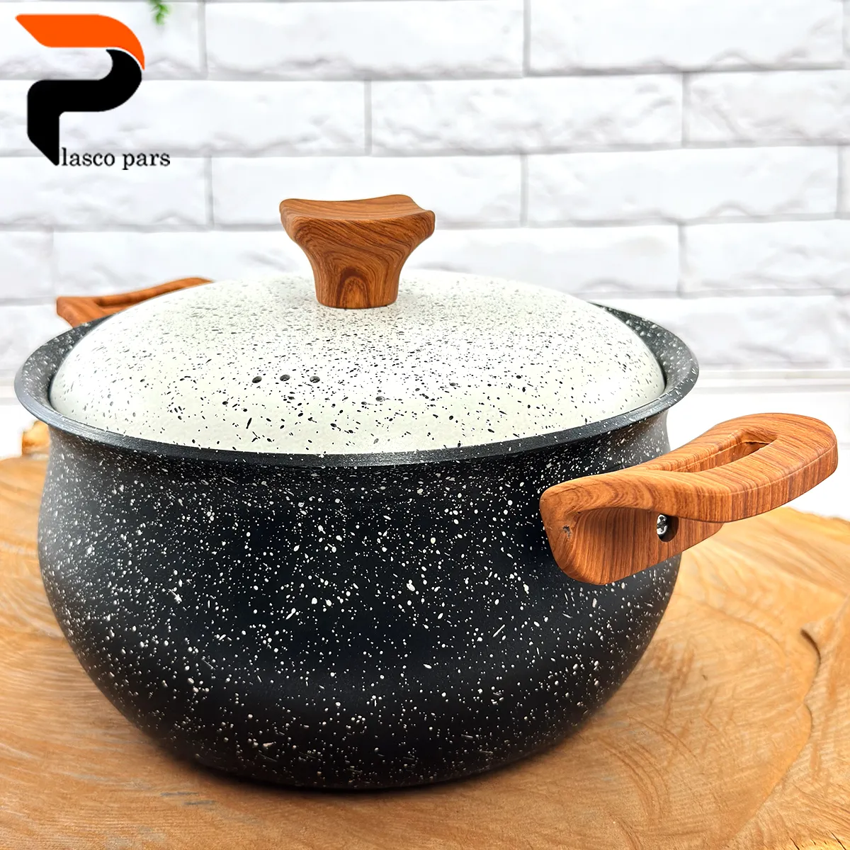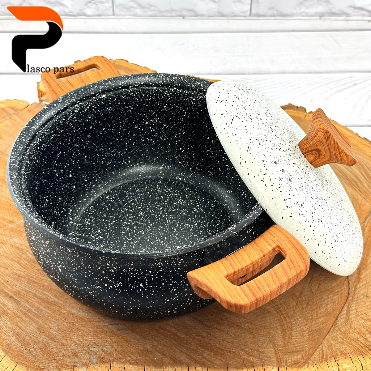 قابلمه 20 دسته چوبی گرانیتی مشکی سفید هاناتک