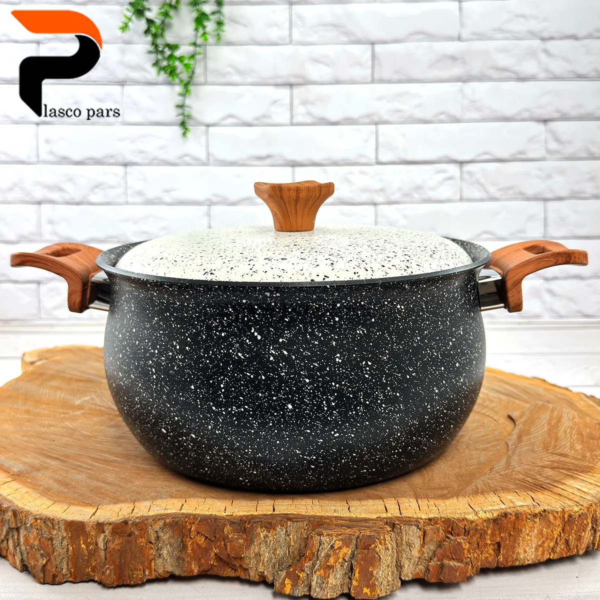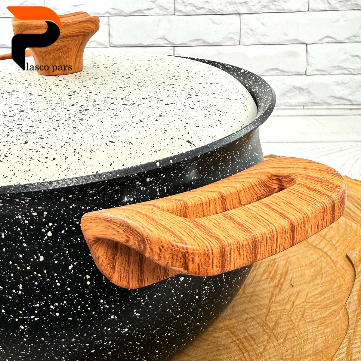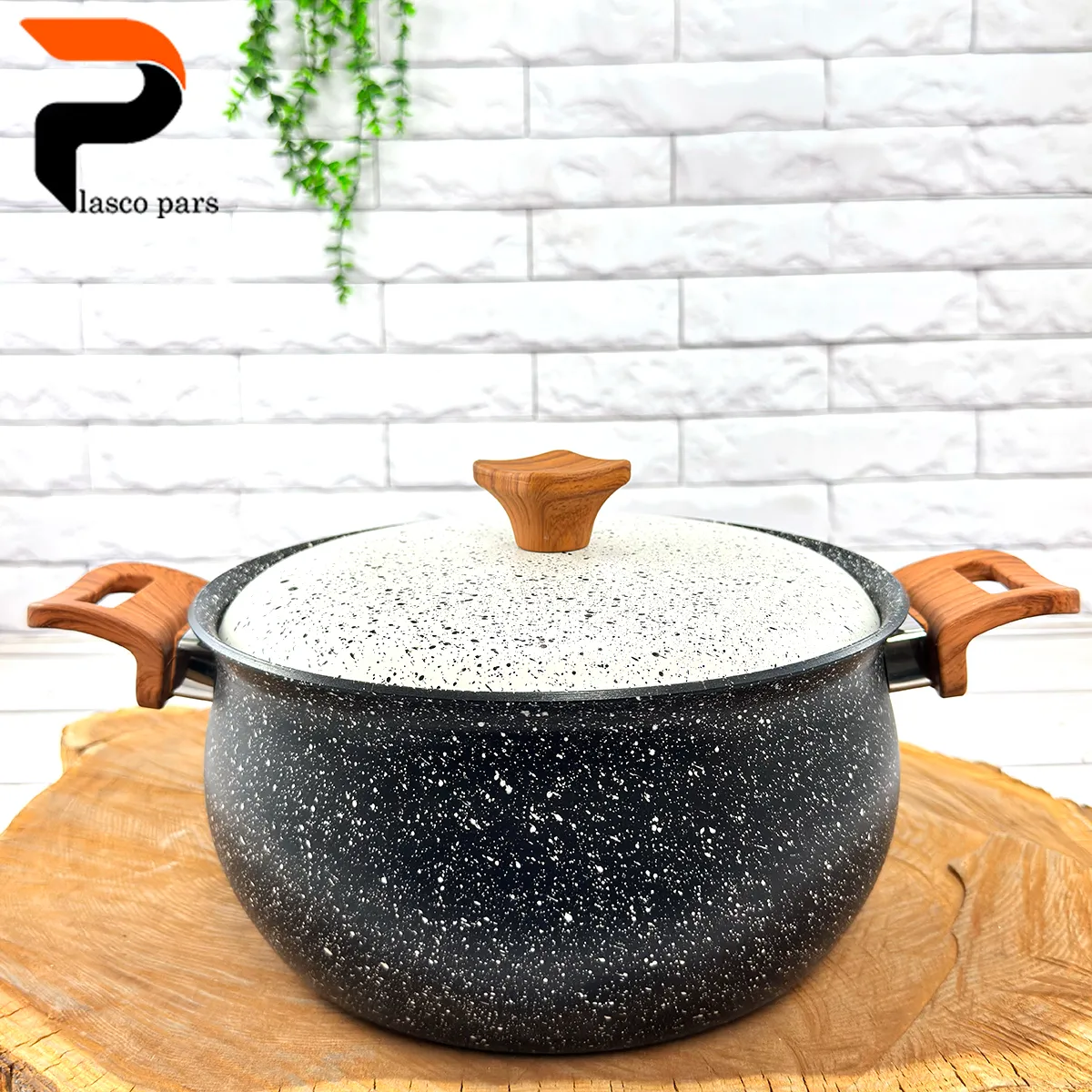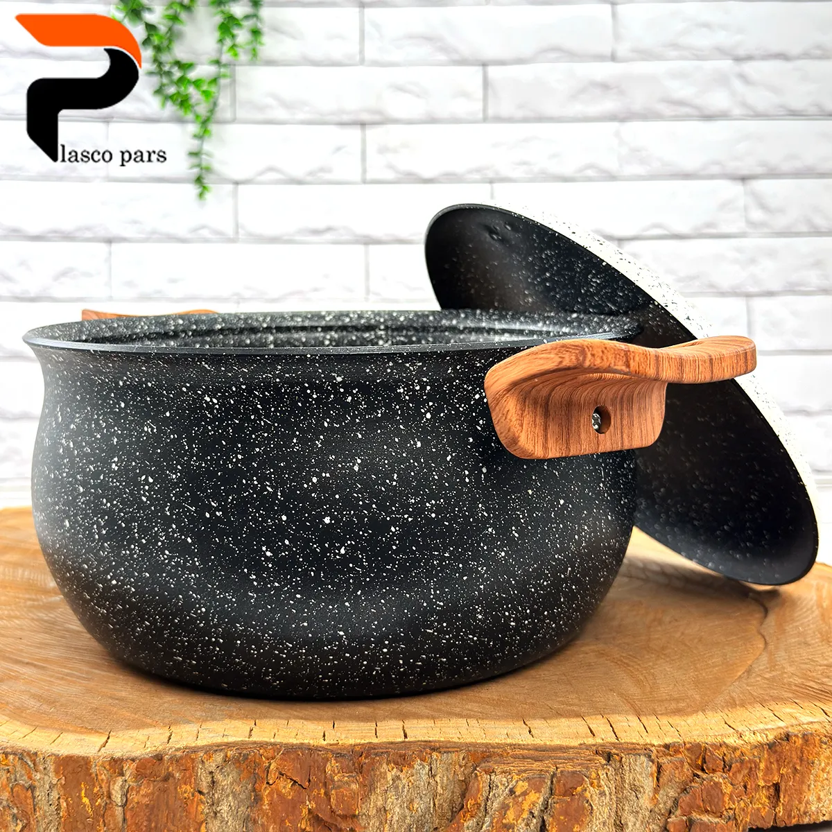 قابلمه 24 دسته چوبی گرانیتی مشکی سفید هاناتک