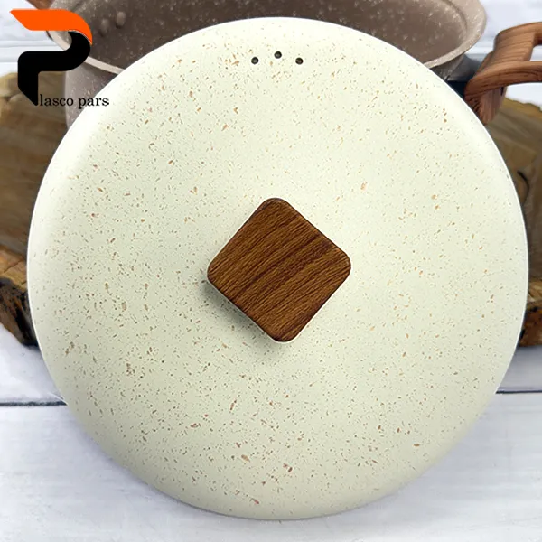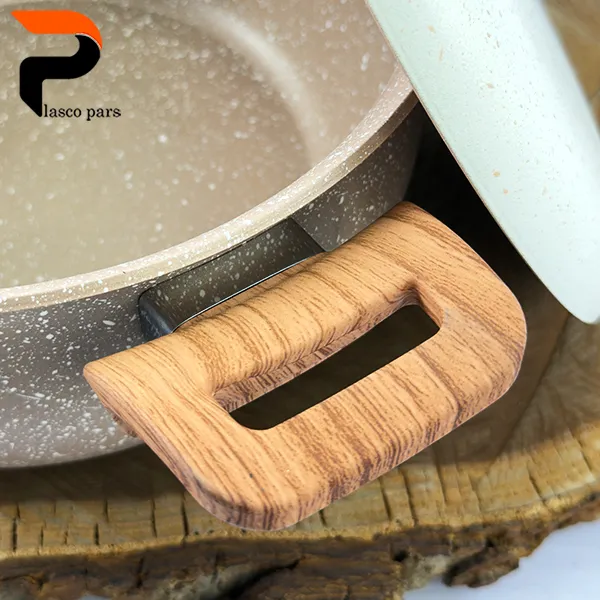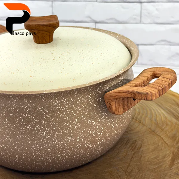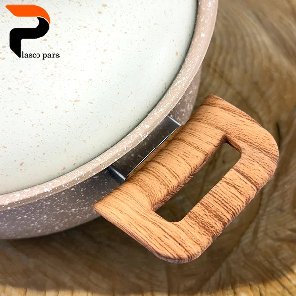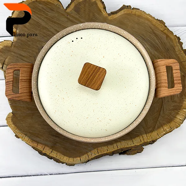 قابلمه 24 دسته چوبی گرانیتی نسکافه ای کرم هاناتک