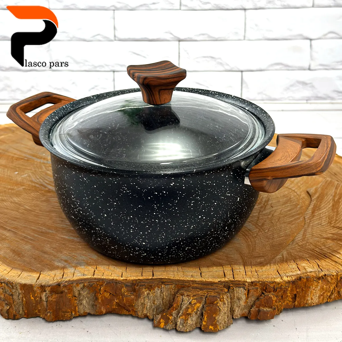 قابلمه 24 ونیز دسته چوبی درب پیرکس مشکی هاناتک