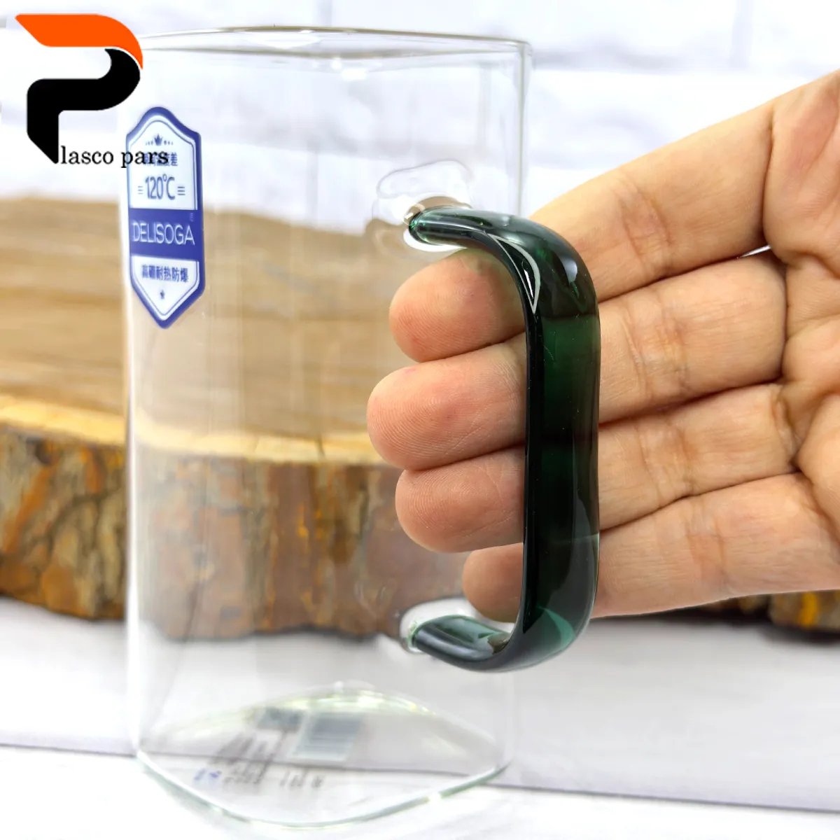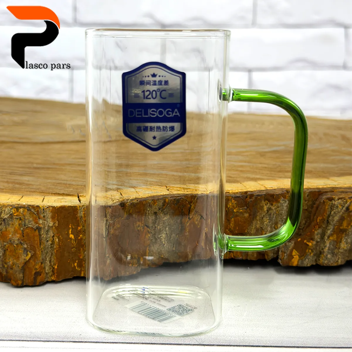 لیوان پیرکس مربعی دسته رنگی همه کاره را می توان برای چای ، شیر ، آب میوه و … استفاده کرد .
