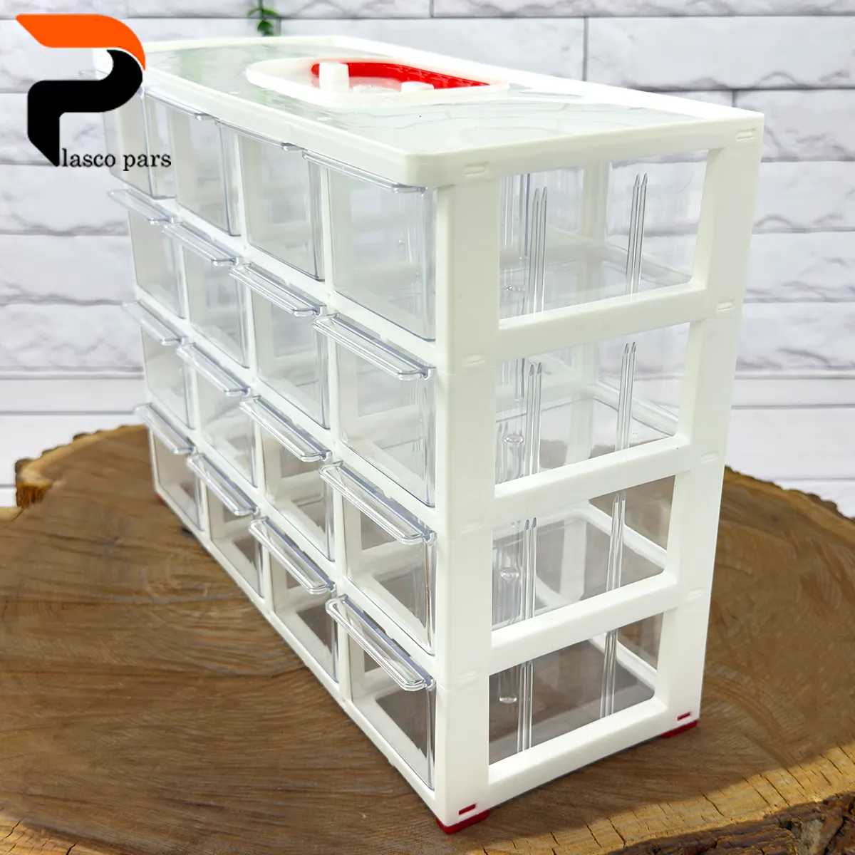 جعبه قطعات یا پالت 16 کشو کریستالی از جعبه قطعات های چند منظوره به حساب می آید. بنابراین از این پالت کشویی می توان برای دسته بندی تمامی قطعات کوچک استفاده نمود. ویژگی خوب آن کوچک بودن کشوهای آن می باشد که می توان برای دسته بندی تمامی قطعات کوچک استفاده نمود. هر کشو از این جعبه به صورت شفاف و کریستالی میباشد به همین دلیل در تشخیص قطعات داخل هر کشو بسیار موثر است. کشوهای این پالت دارای لبه کوچکی است تا بوسیله این لبه کشو ها باز و بسته شوند. همچنین به دلیل کریستالی بودن این پالت، به راحتی می توان قطعات را دسته بندی کرده و یا با استفاده از لیبل محتویات هر کشو را مشخص نمود.