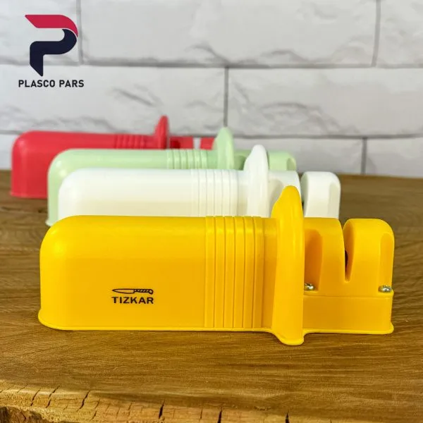 دستهی این چاقو تیزکن از جنس پلاستیک فشرده و مقاوم تولید شده که باعث کنترل راحت و جلوگیری از سر خوردن در حین استفاده میشود. قسمت تیزکننده شامل تیغههای داخلی از جنس سرامیک و فولاد است که برای تیز کردن سریع انواع چاقوهای آشپزخانه، چاقوهای میوهخوری، قصابی و… مناسب میباشد.
