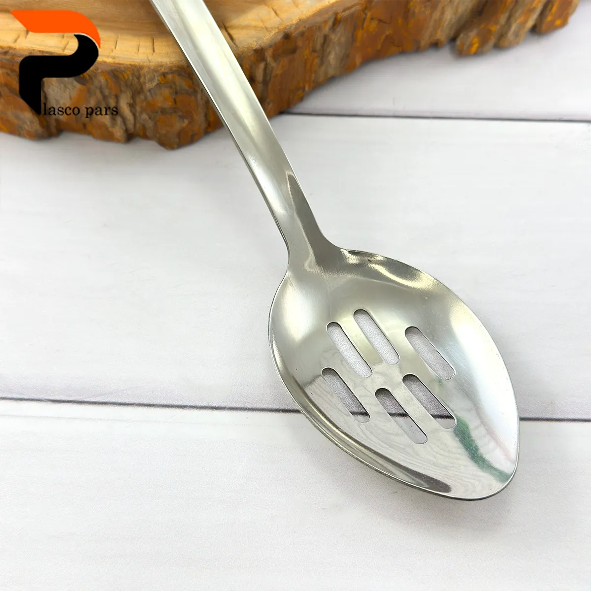 کفگیر ملاقه استیل دسته چوبی